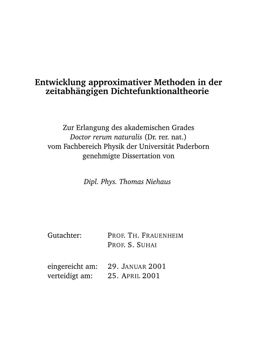 Entwicklung approximativer Methoden in der zeitabhängigen Dichtefunktionaltheorie / von Thomas Niehaus