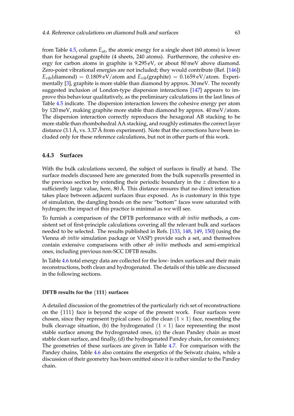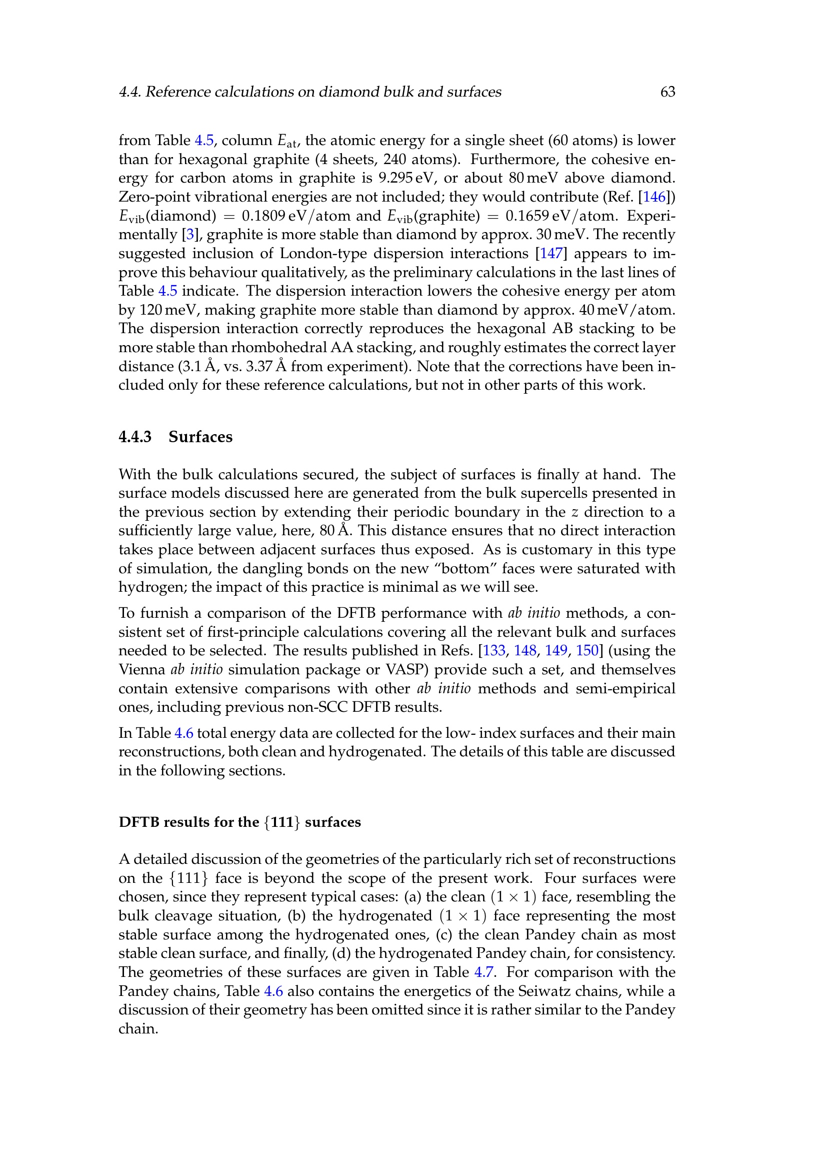4.4 Reference calculations on diamond bulk and surfaces