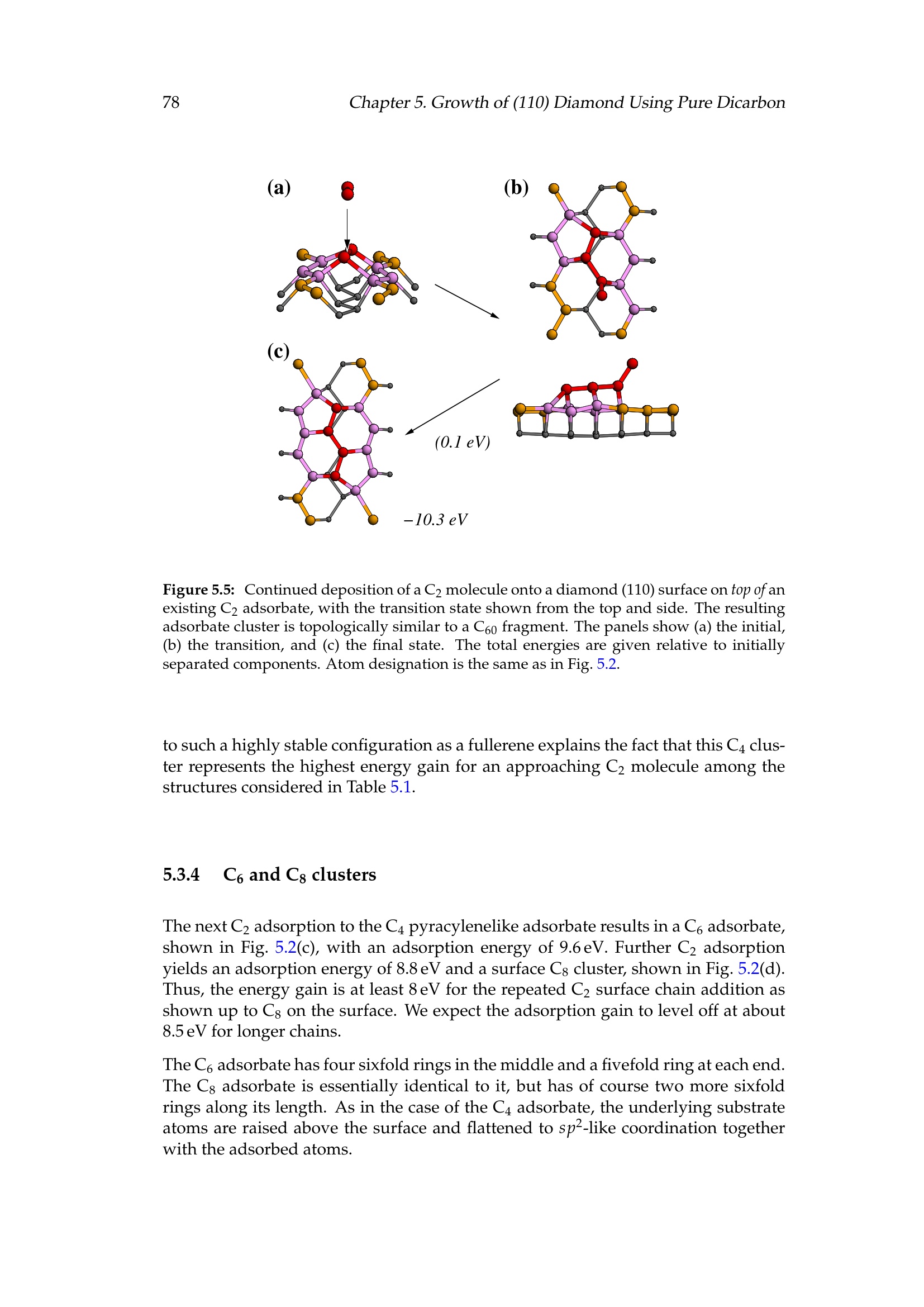 5.3 Adsorption and energetics of small carbon clusters