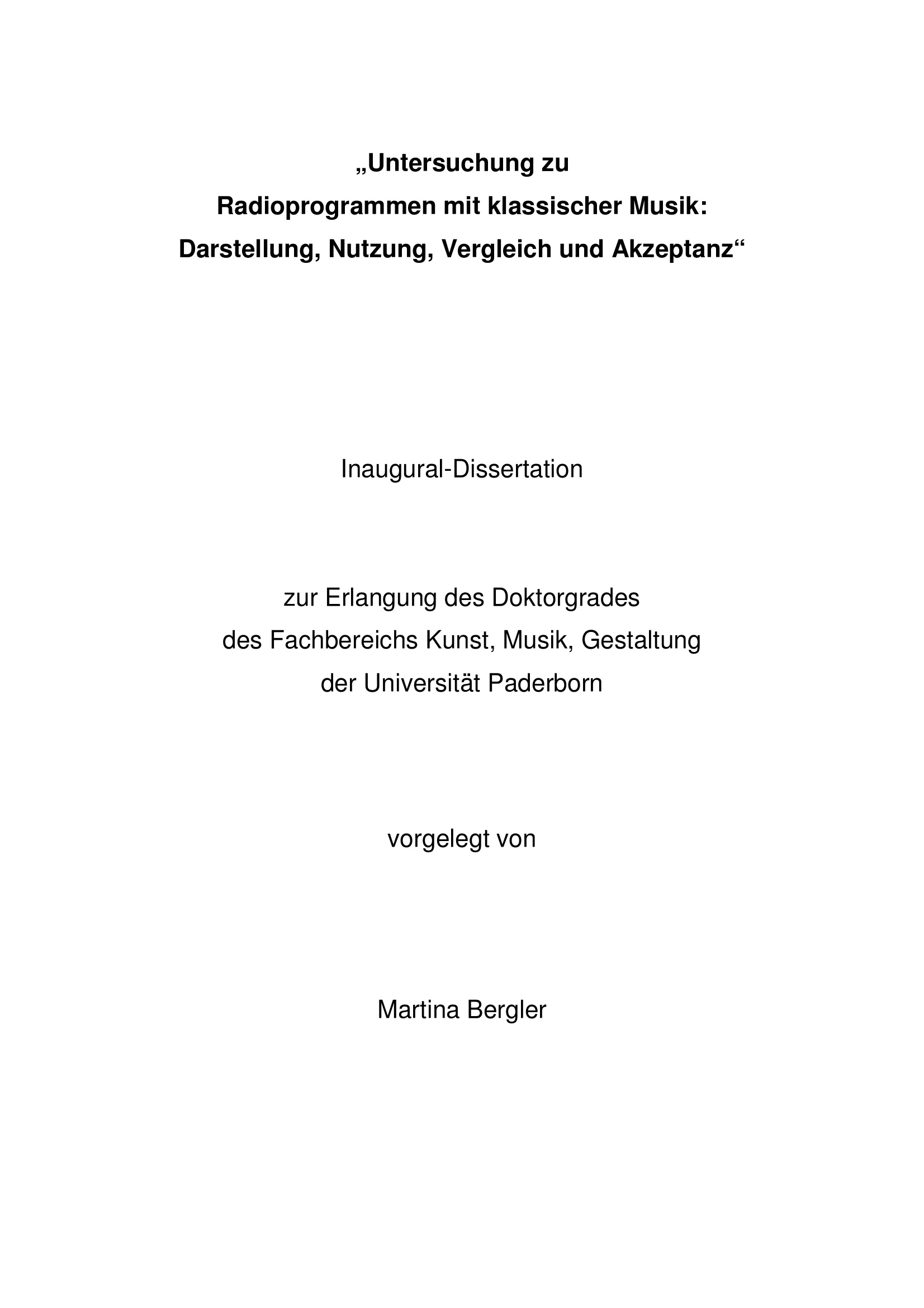 Untersuchung zu Radioprogrammen mit klassischer Musik : Darstellung, Nutzen, Vergleich und Akzeptanz / vorgelegt von Martina Bergler