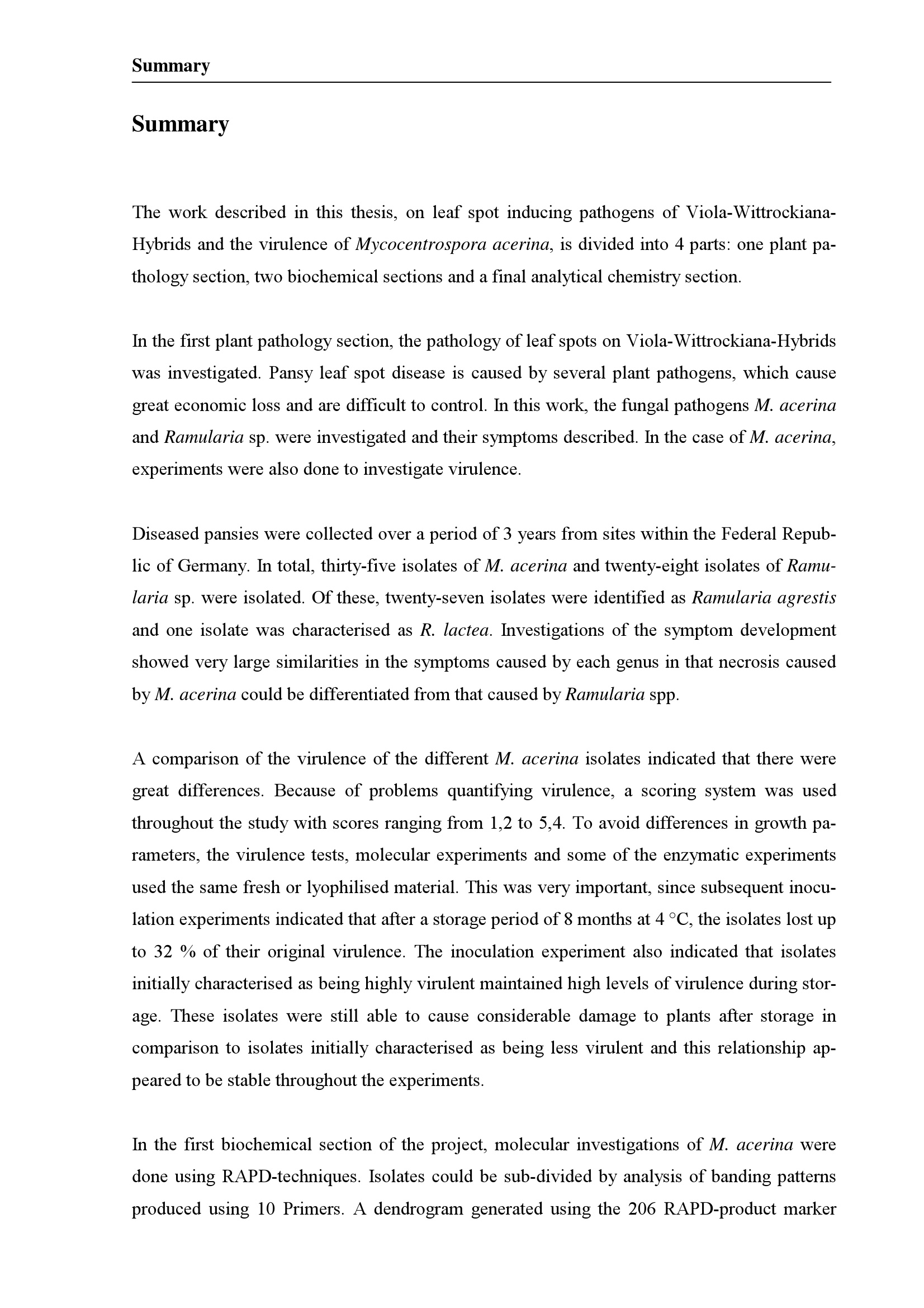Untersuchung des Blattfleckenerregerkomplexes bei Viola-Wittrockiana-Hybriden unter besonderer Berücksichtigung der Virolenz von Mycocentrospora acerina / von Bernd Gutter