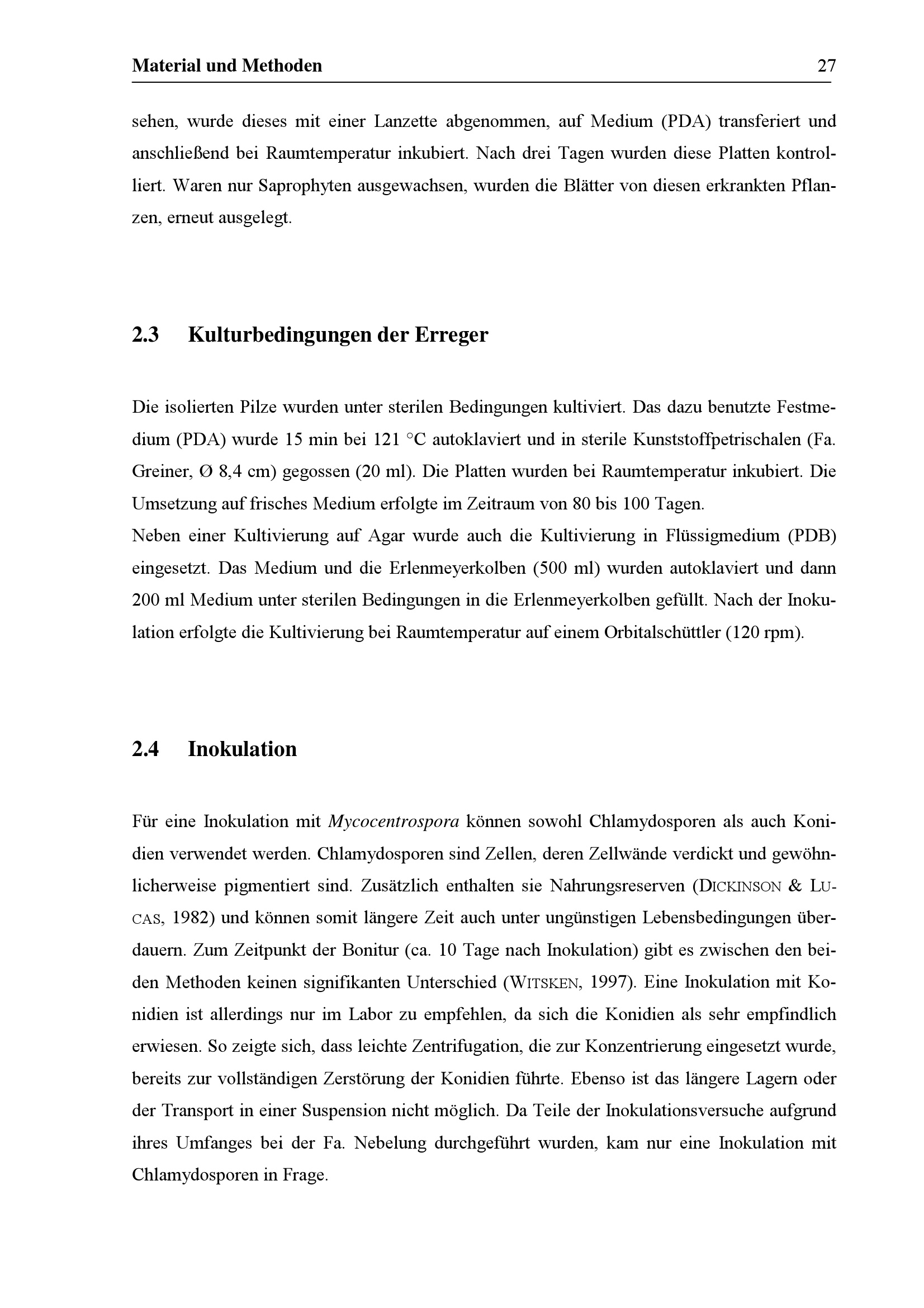 Kulturbedingungen der Erreger