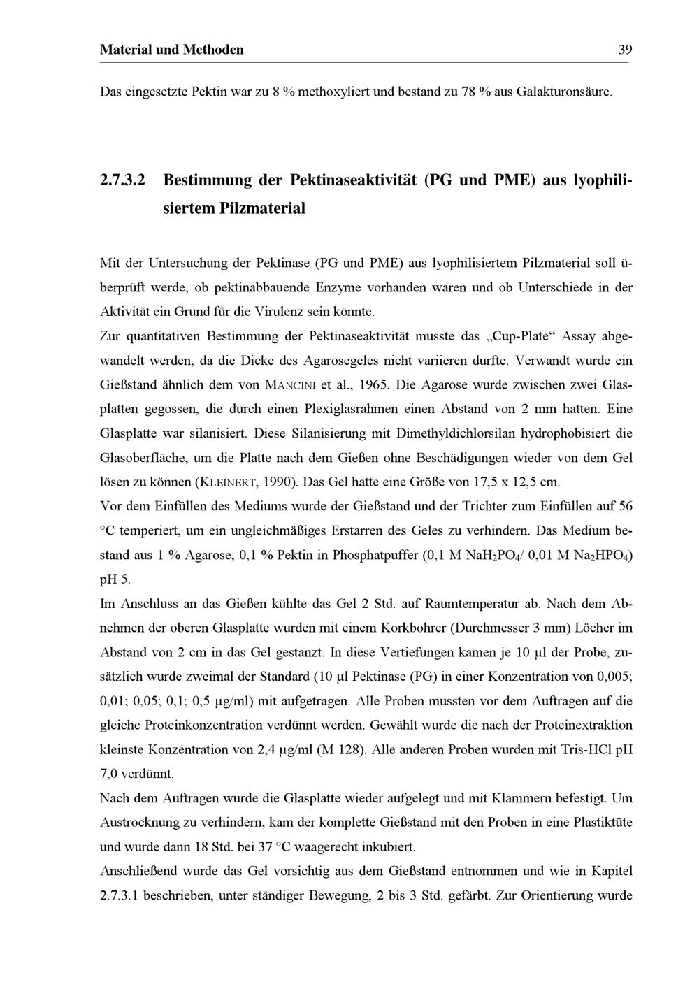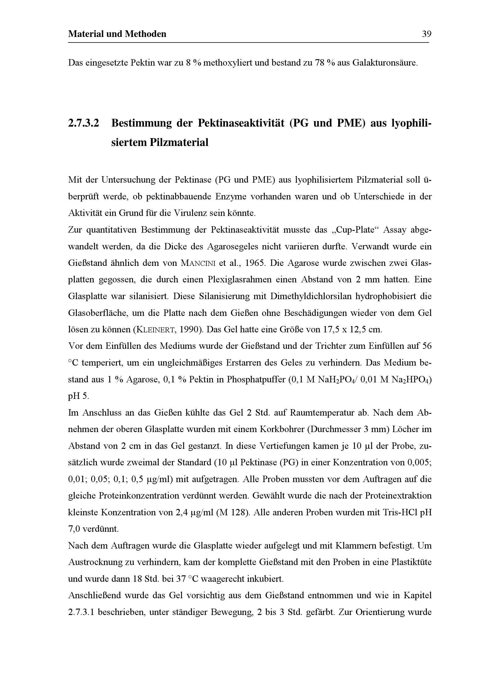 Bestimmung der Pektinaseaktivität (PG und PME) aus lyophilisiertem Pilzmaterial