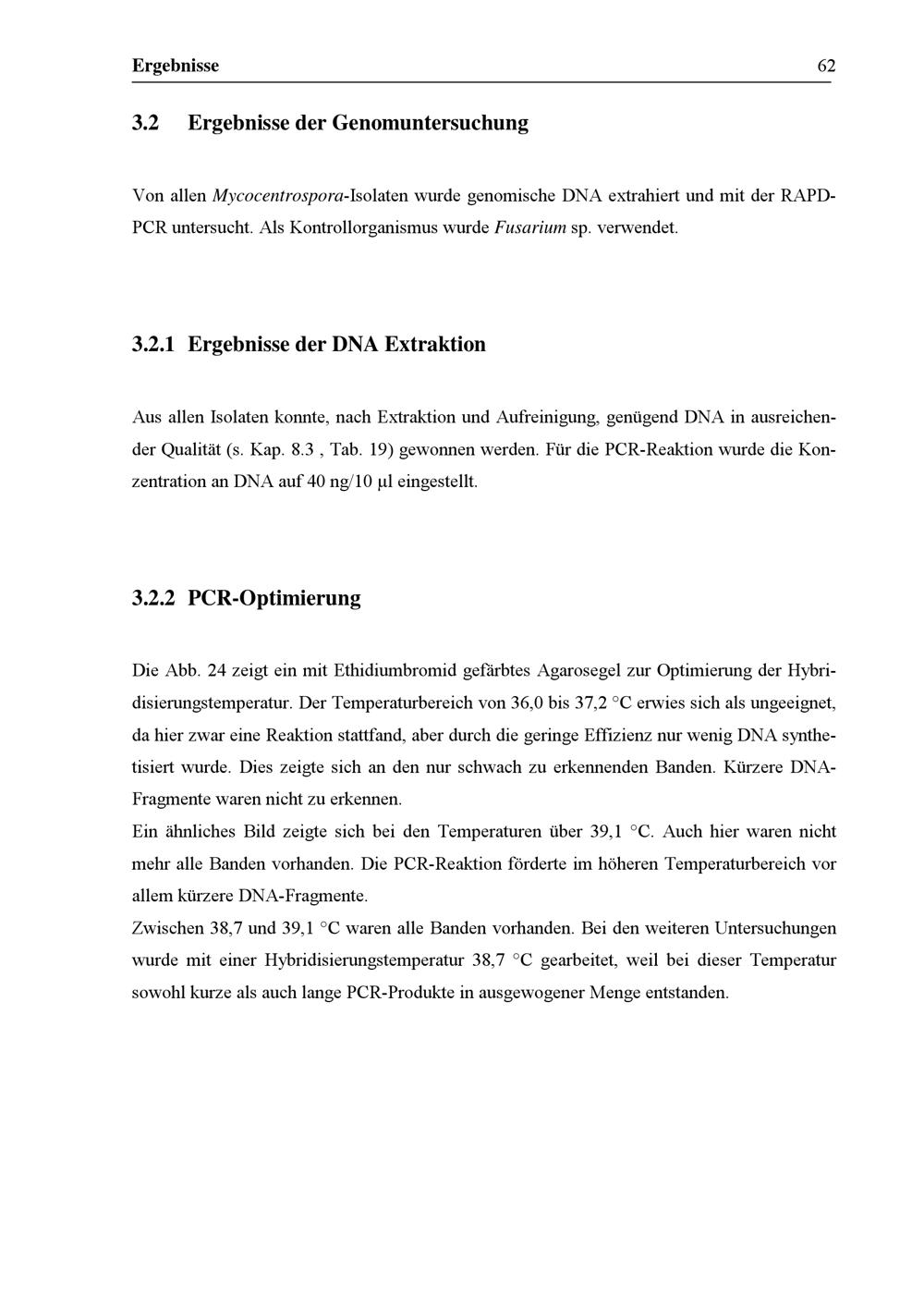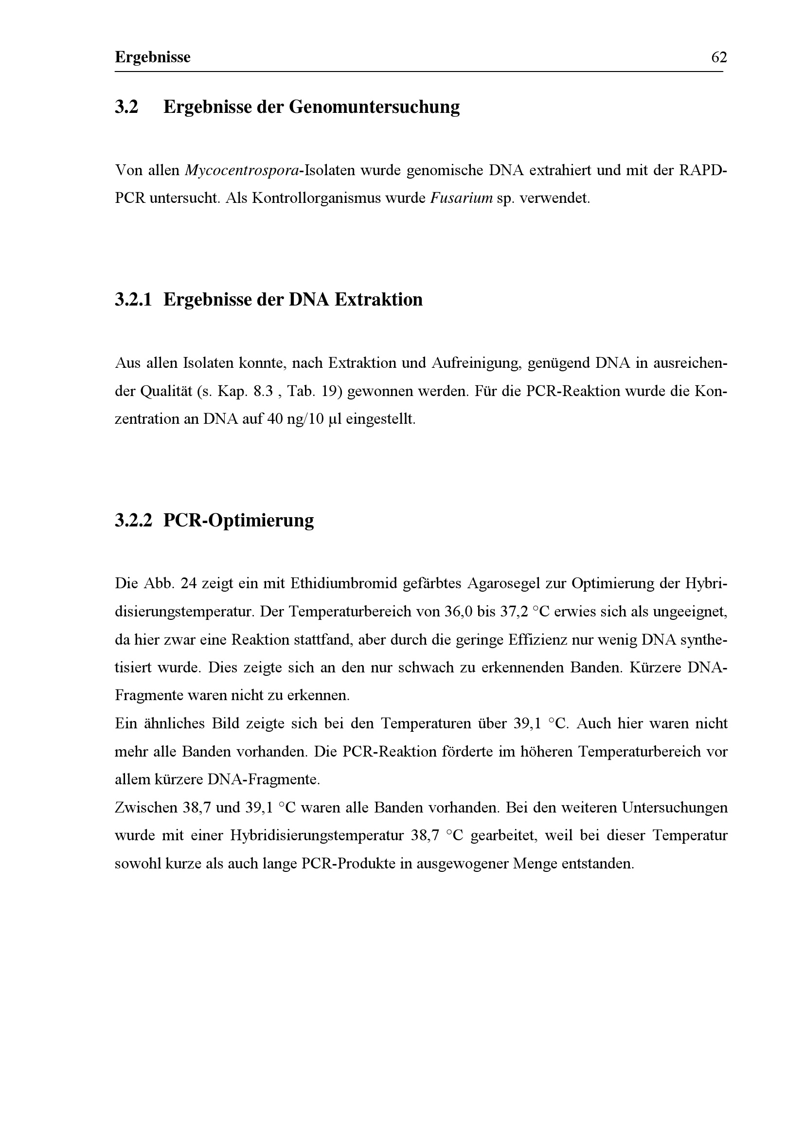 Ergebnisse der DNA Extraktion