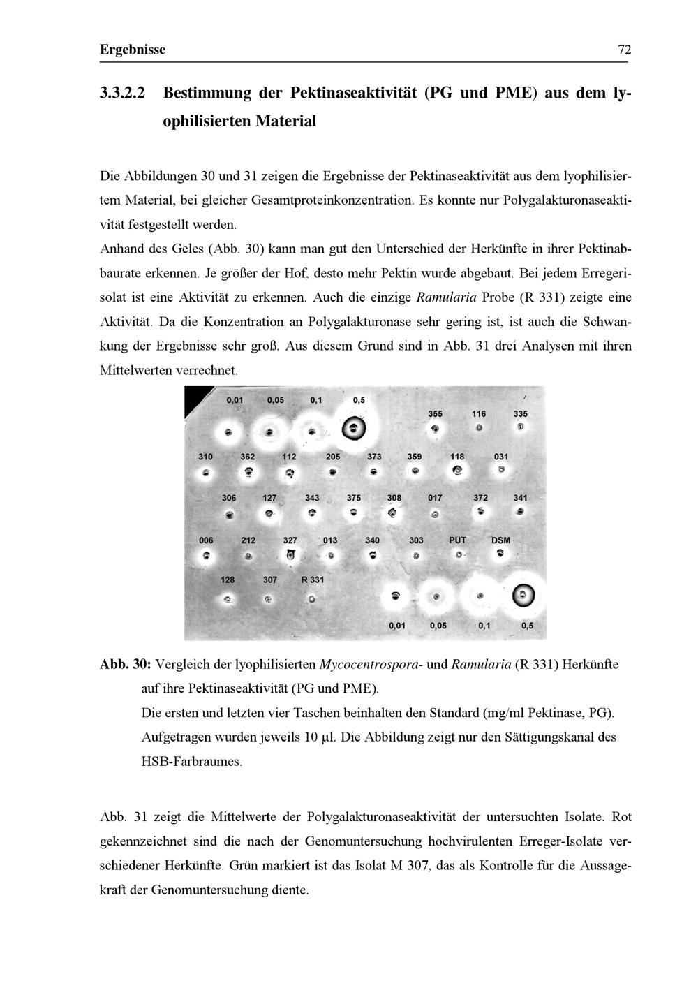 Bestimmung der Pektinaseaktivität (PG und PME) aus dem lyophilisierten Material