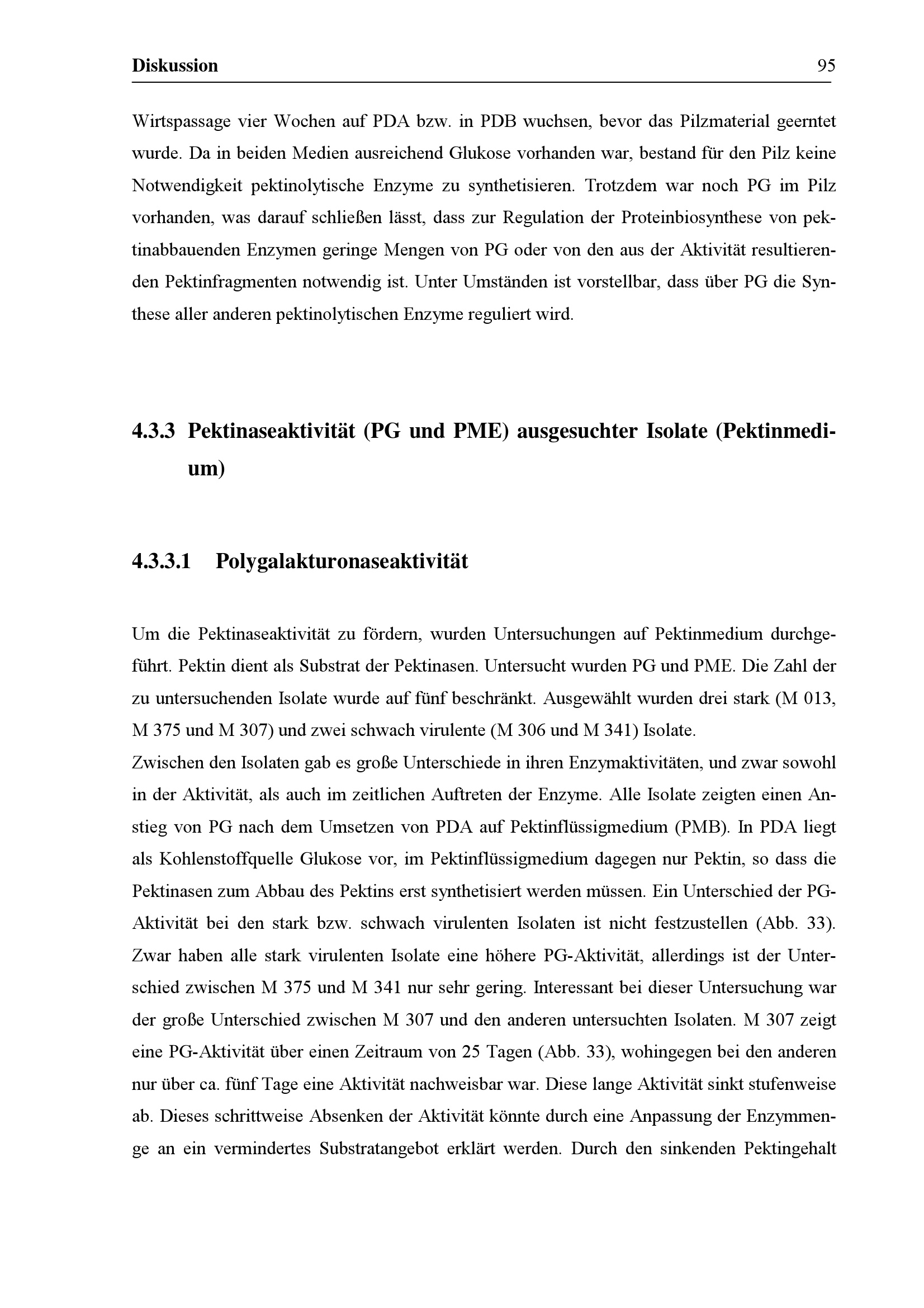 Pektinaseaktivität (PG und PME) ausgesuchter Isolate (Pektinmedium)