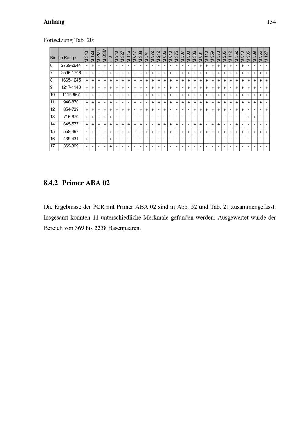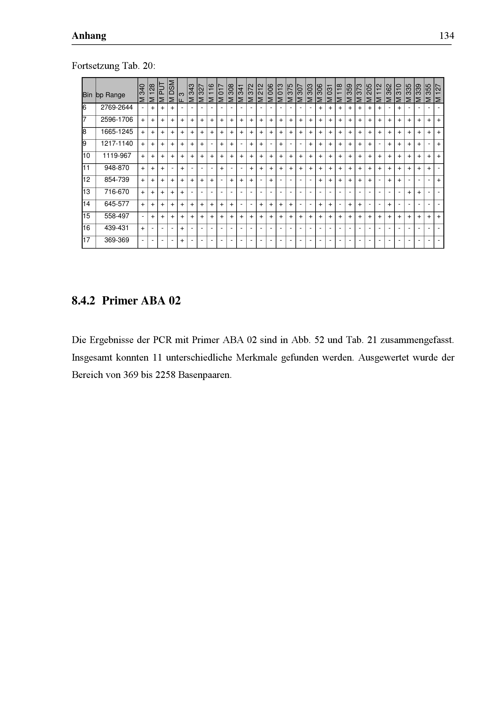 Einzelergebnisse der Primer