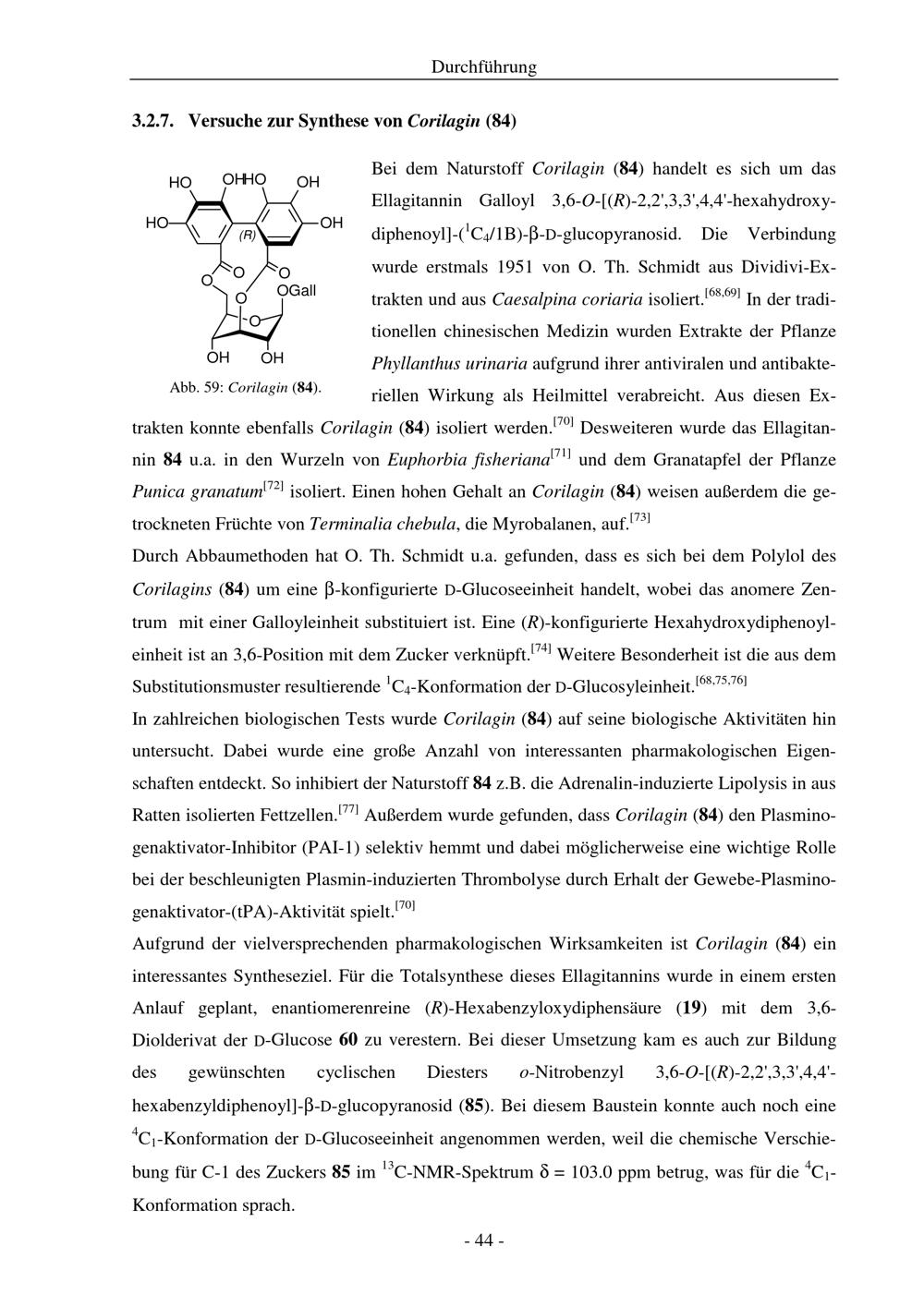 Versuche zur Synthese von Corilagin (84)