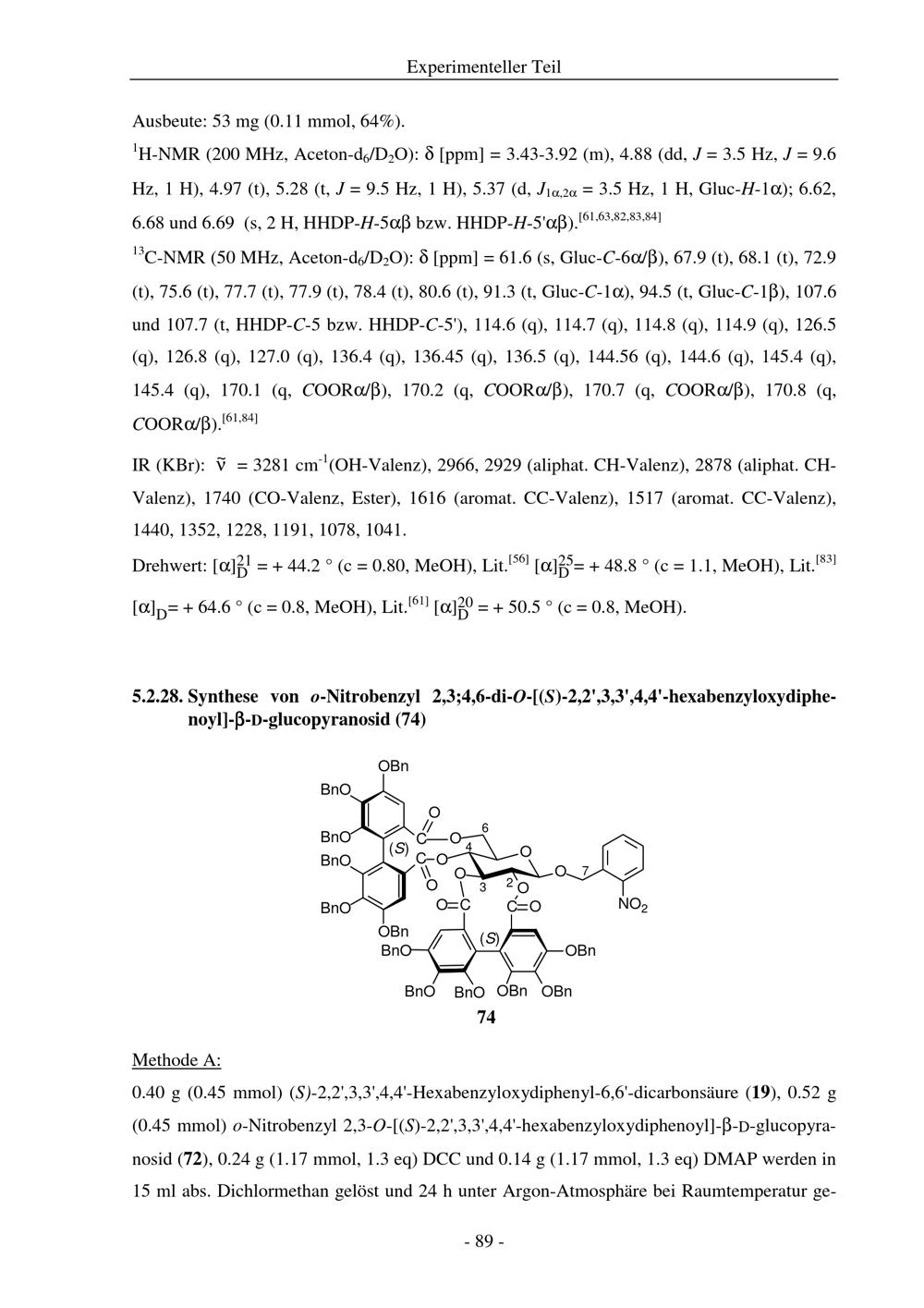 Synthese von o-Nitrobenzyl 2,3;4,6-di-O-[(S)-2,2',3,3',4,4'-hexabenzyloxy˜diphe˜noyl]-(-D-glucopyranosid[...]