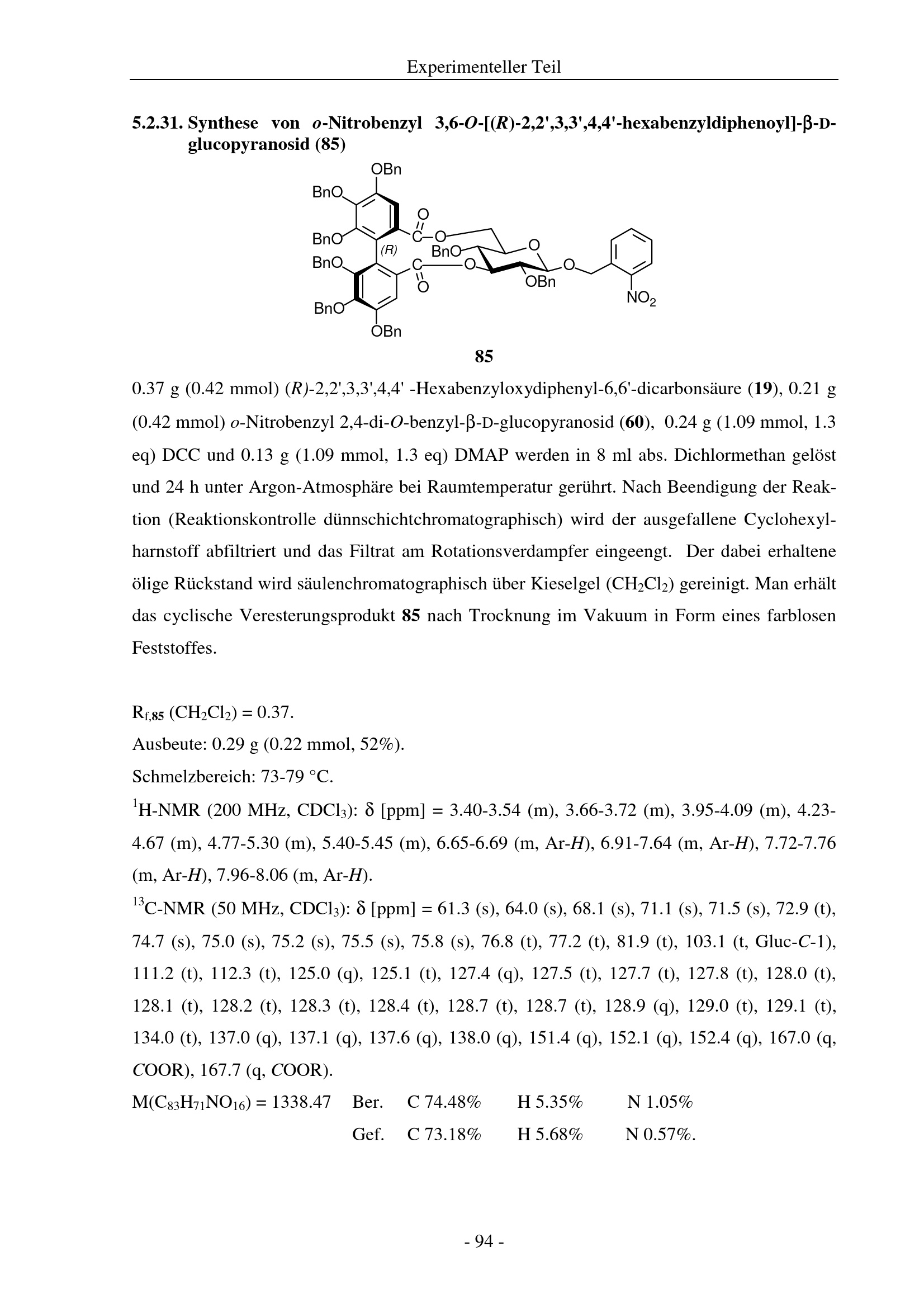 Synthese von o-Nitrobenzyl 3,6-O-[(R)-2,2',3,3',4,4'-hexabenzyldiphenoyl]-?-D-glucopyranosid[...]