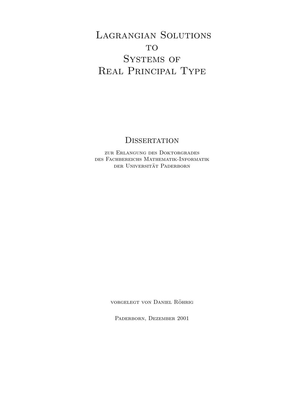 Lagrangian solutions to systems of real principal type / vorgelegt von Daniel Röhrig