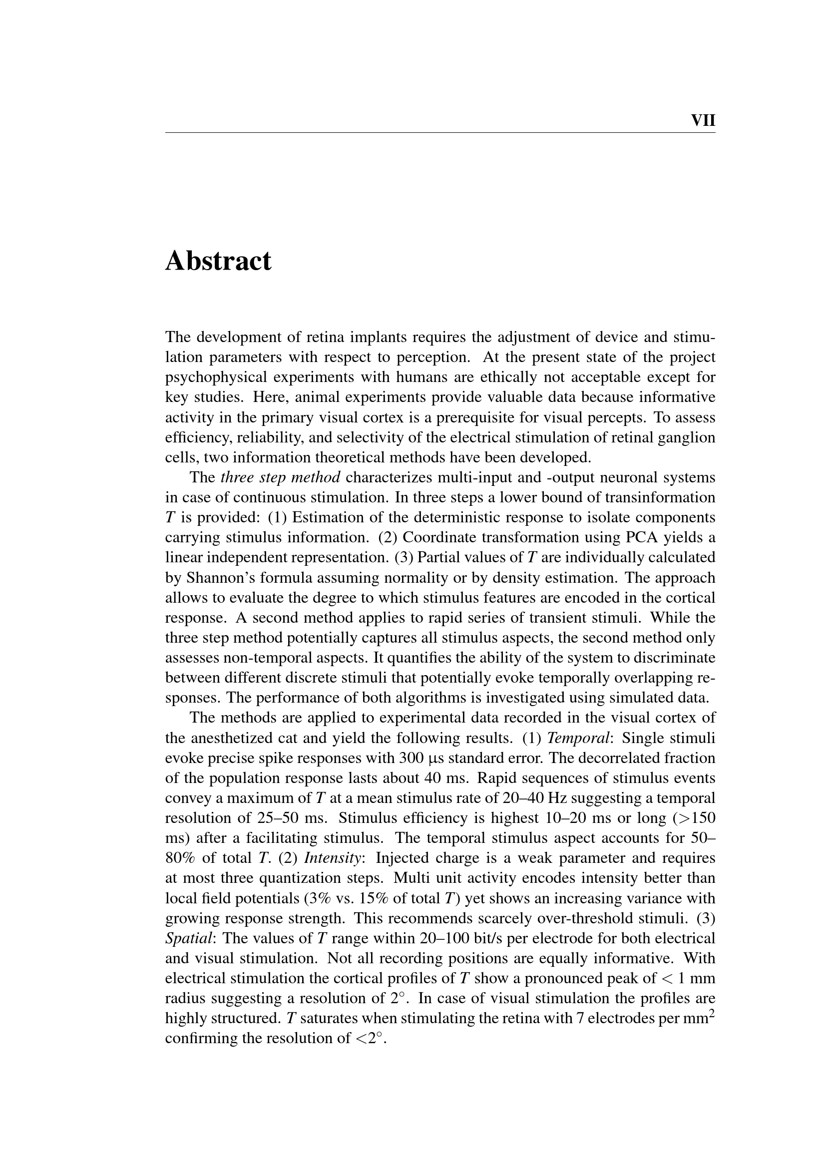 Information theoretical methods for the functional adjustment of retina implant parameters / by Marcus Eger