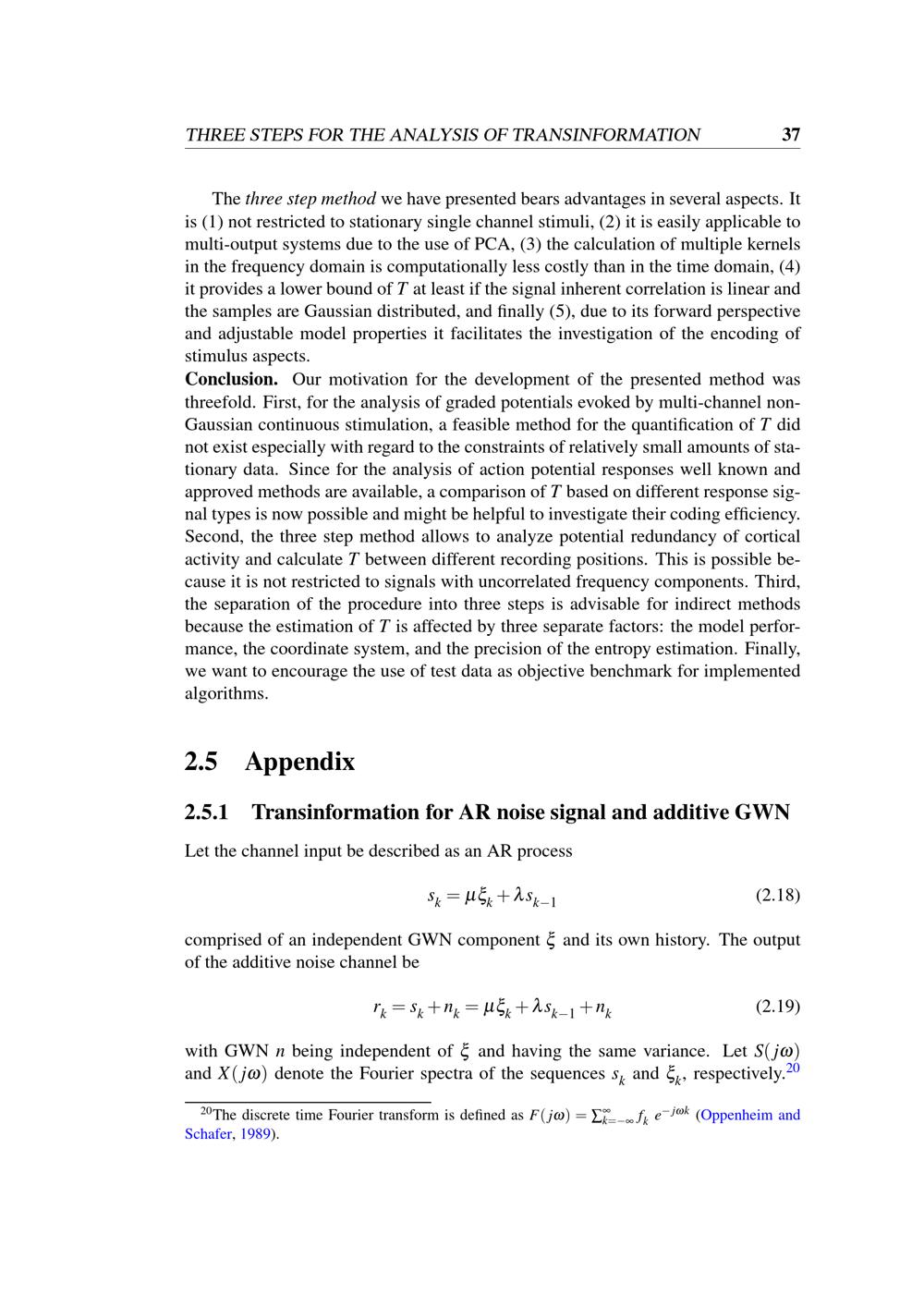 2.5.1 Transinformation for AR noise signal and additive GWN