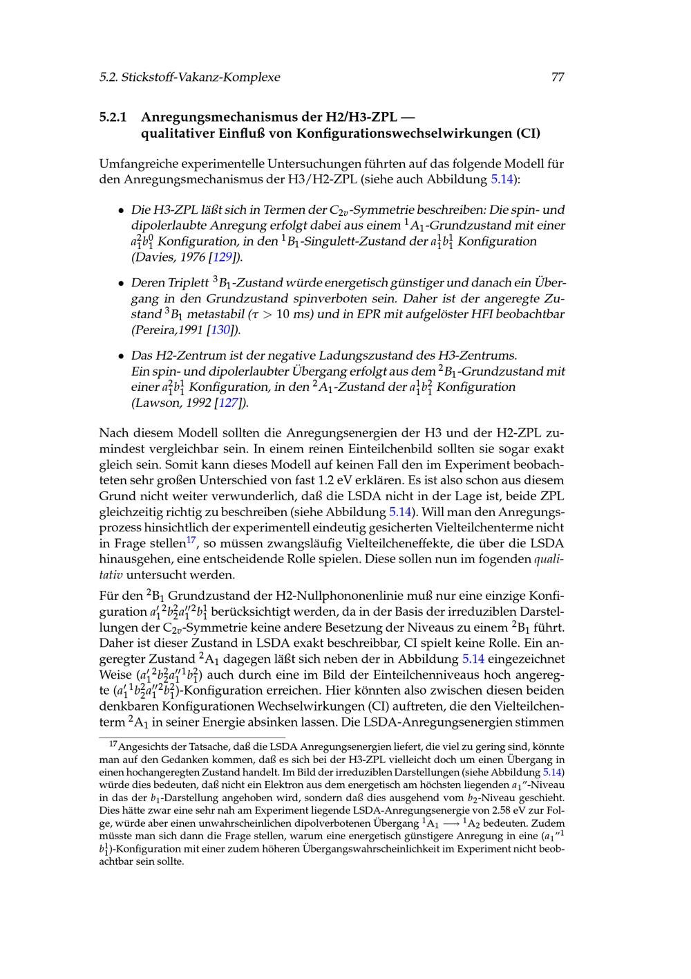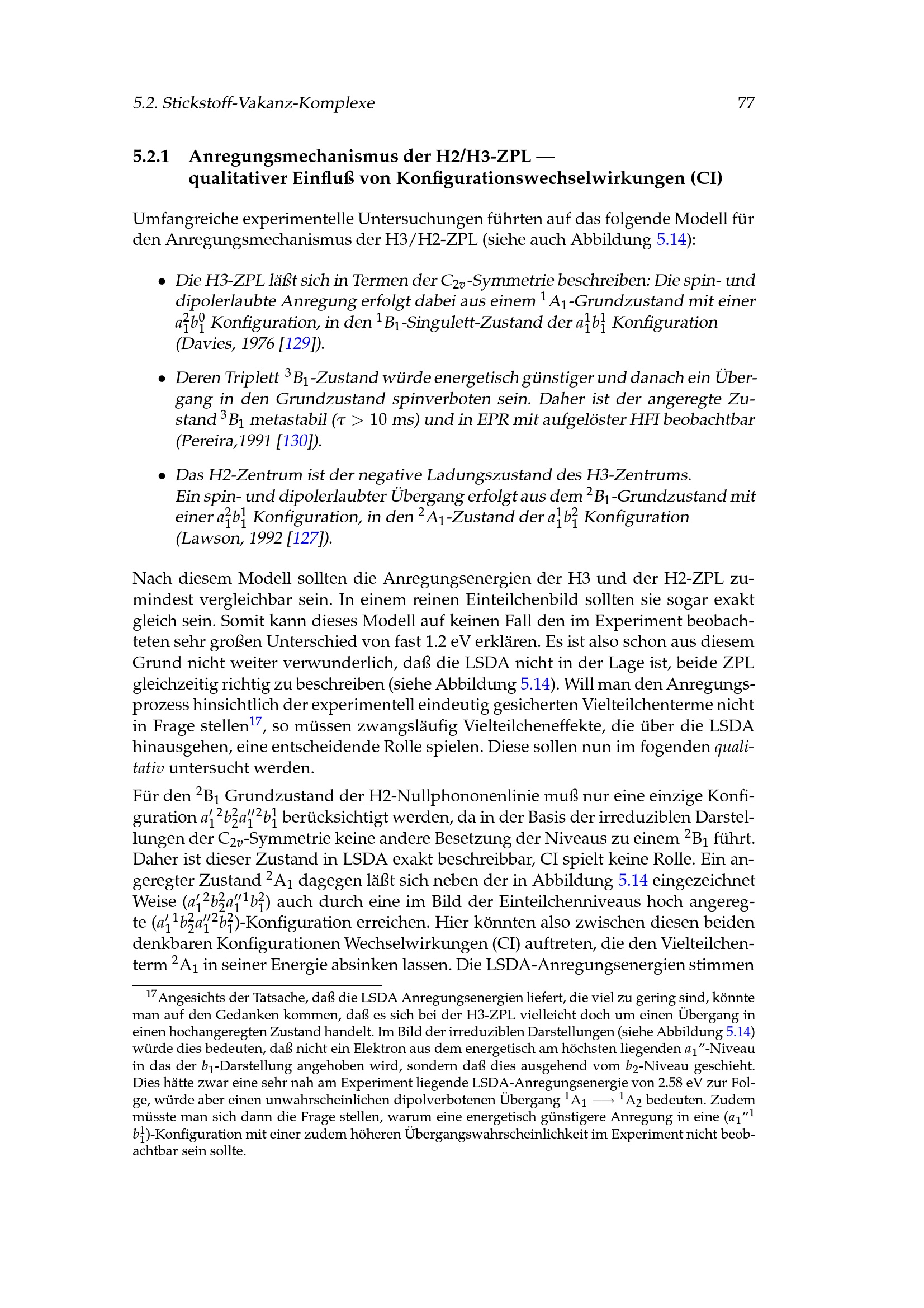 5.2.1 Anregungsmechanismus der H2/H3-ZPL --- qualitativer Einfluß von Konfigurationswechselwirkungen[...]