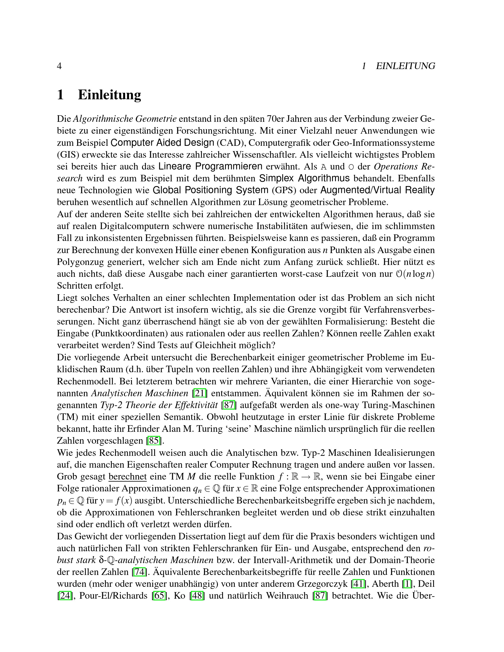 Zur Berechenbarkeit reeller geometrischer Probleme / vorgelegt von Martin Ziegler