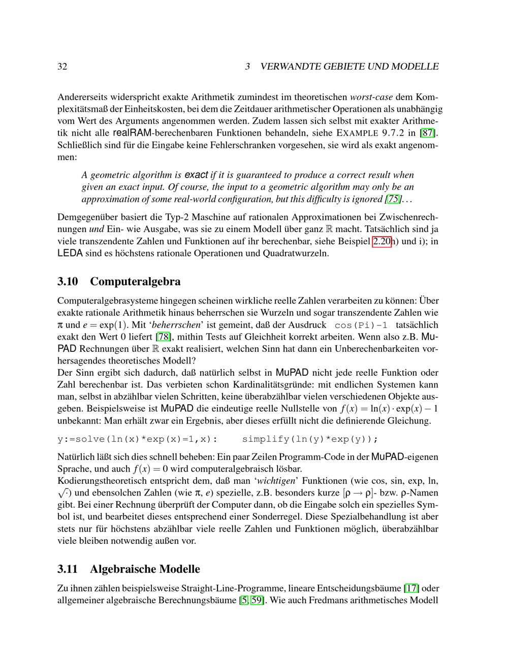 Zur Berechenbarkeit reeller geometrischer Probleme / vorgelegt von Martin Ziegler