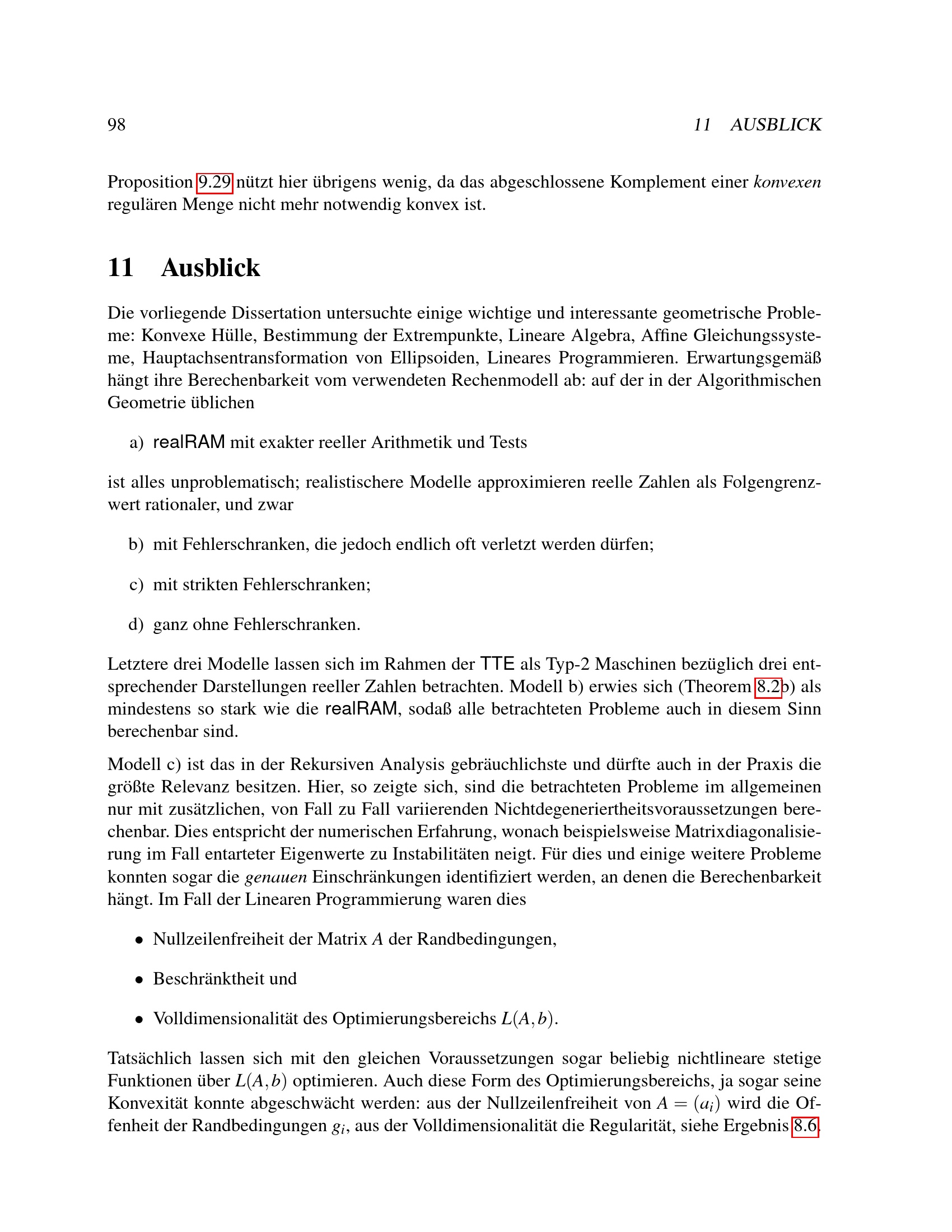 Zur Berechenbarkeit reeller geometrischer Probleme / vorgelegt von Martin Ziegler