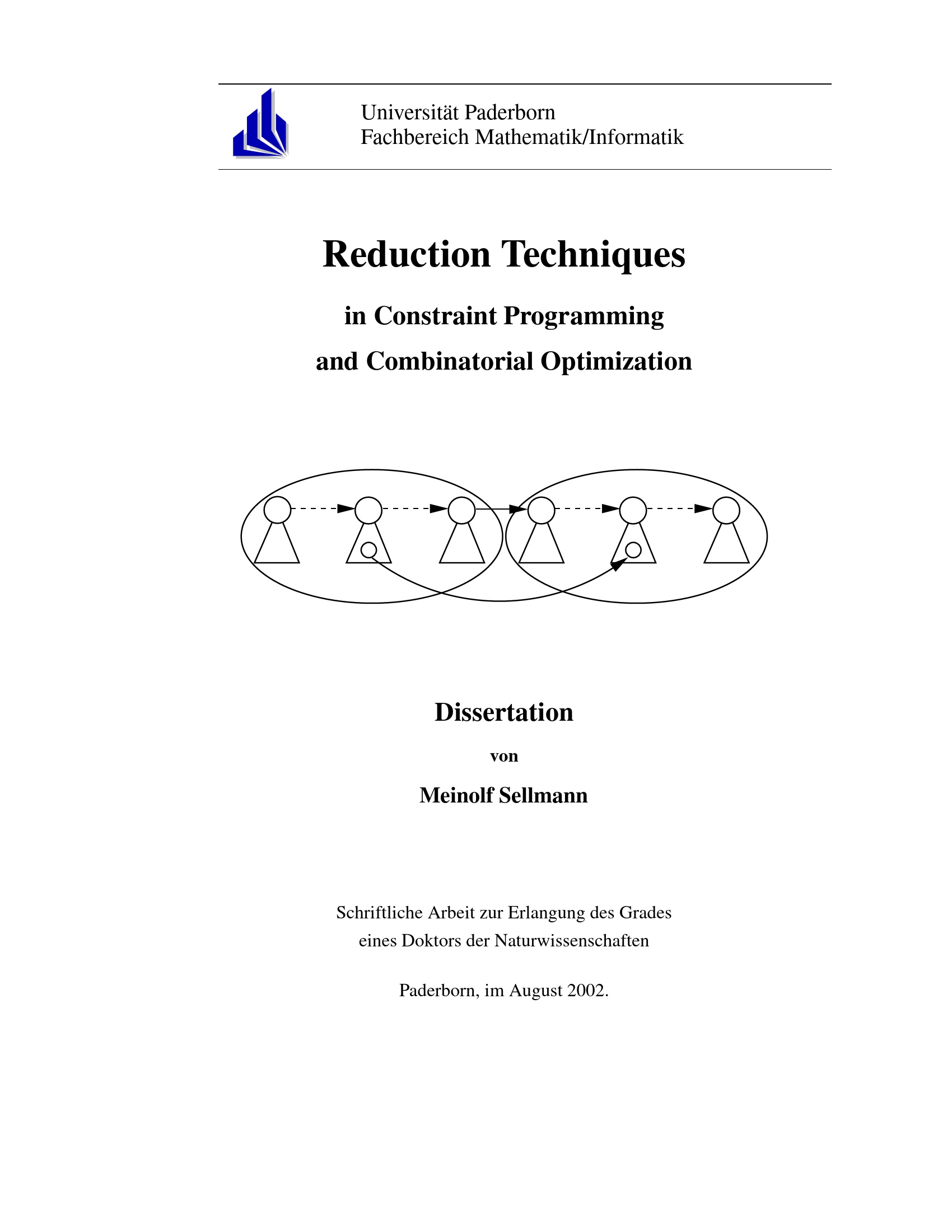 Reduction techniques in constraint programming and combinatorial optimization / von Meinolf Sellmann