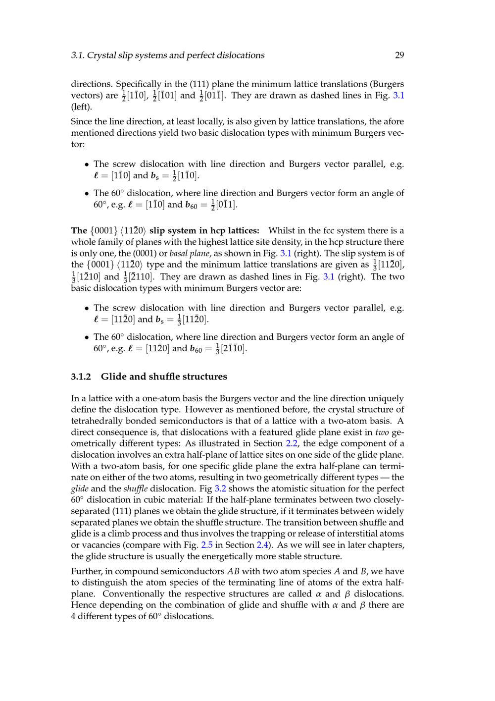 3.1 Crystal slip systems and perfect dislocations