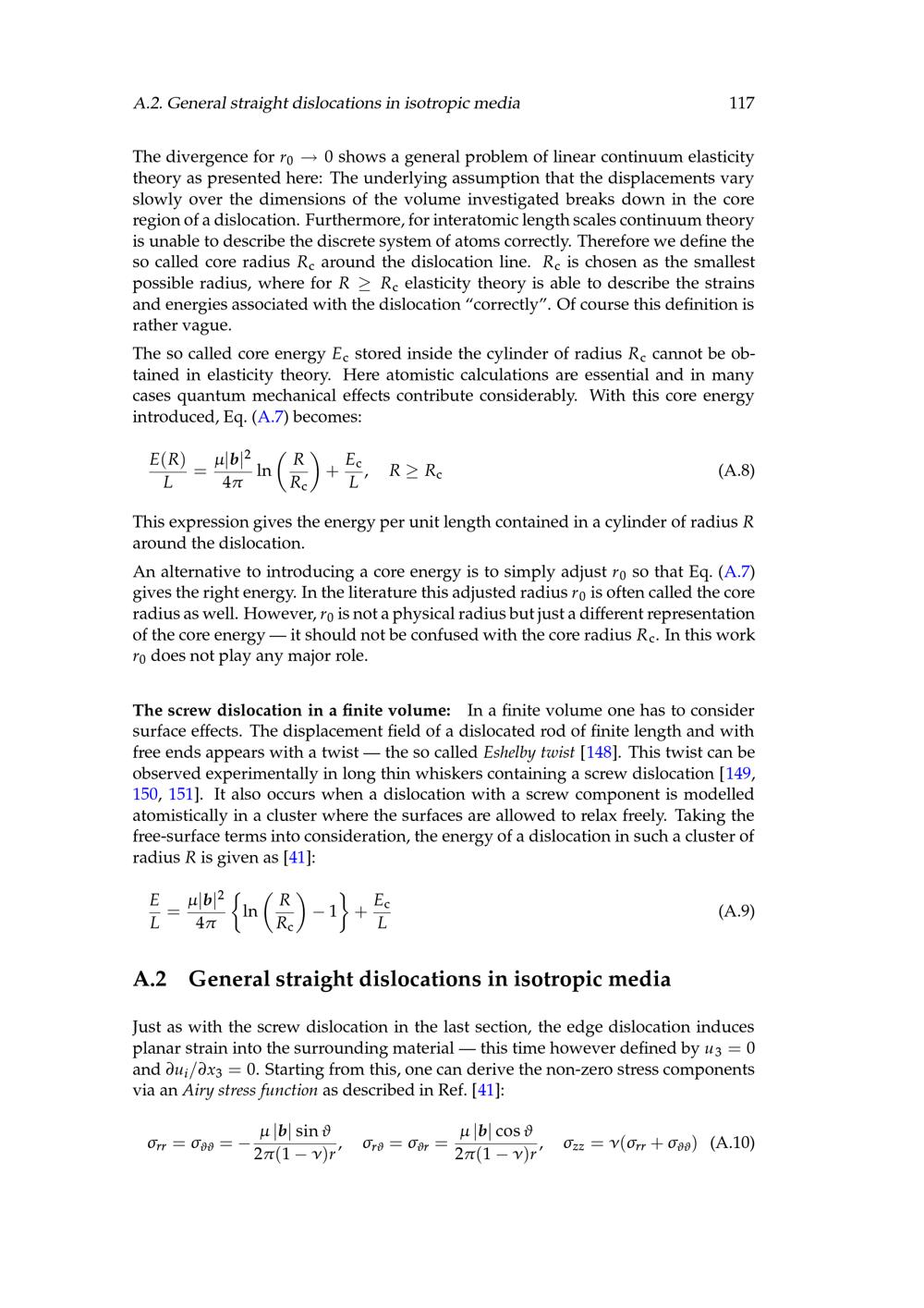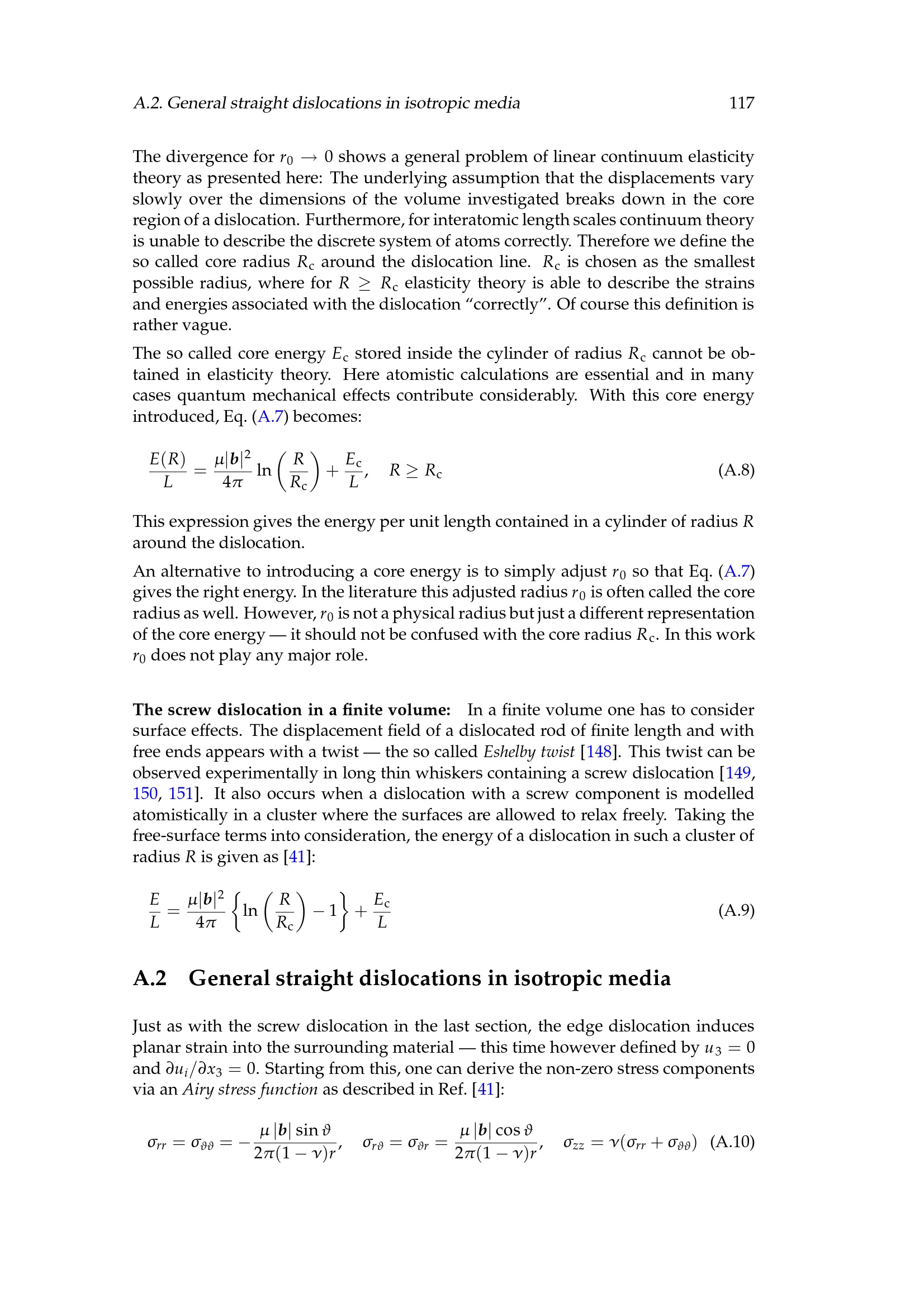 A.2 General straight dislocations in isotropic media