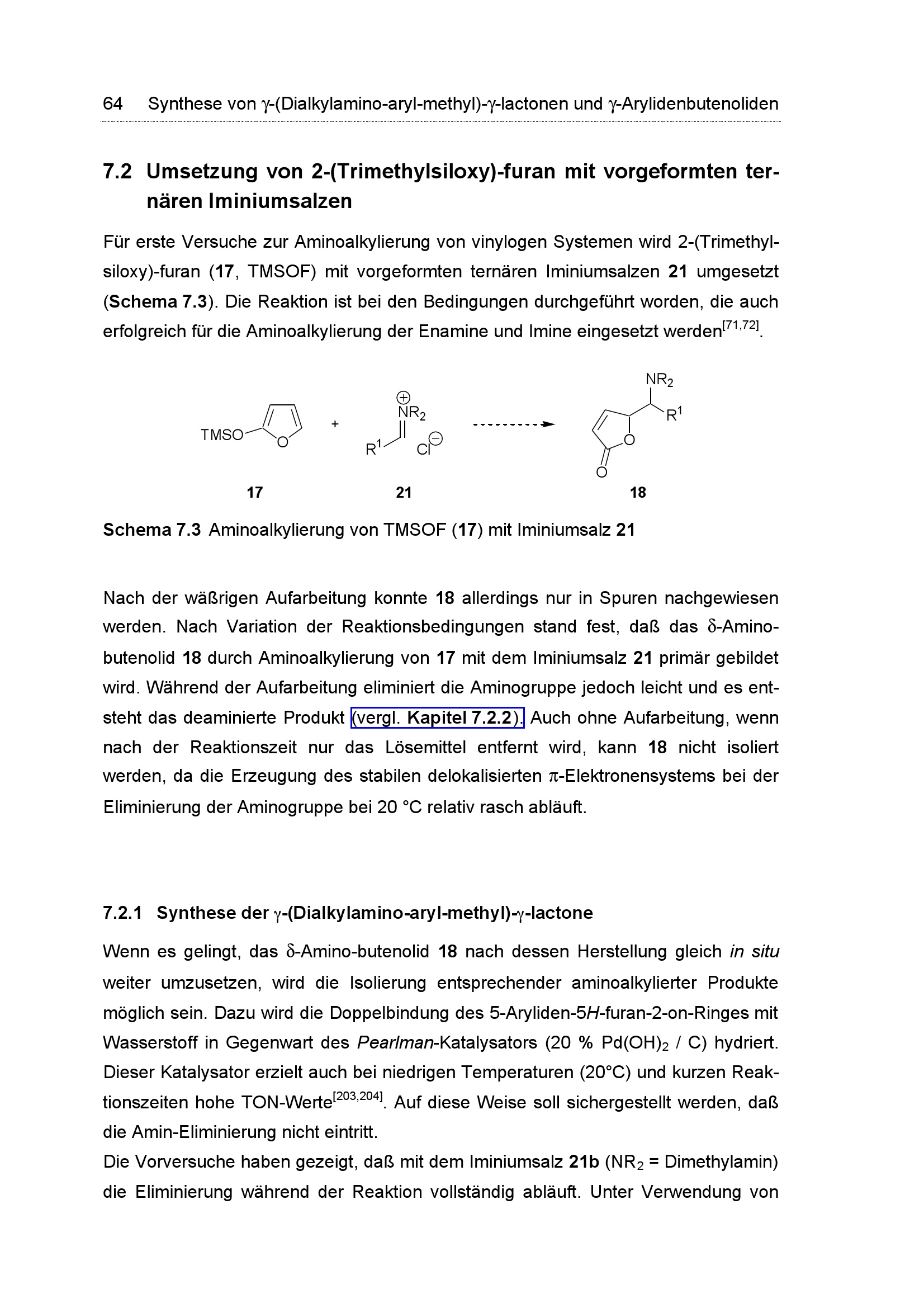 7.2 Umsetzung von 2-(Trimethylsiloxy)-furan mit vorgeformten ternären Iminiumsal[...]