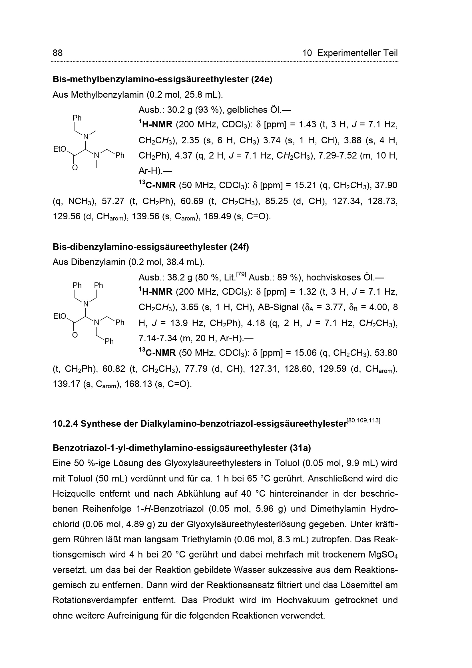 10.2.4 Synthese der Dialkylamino-benzotriazol-essigsäureethylester