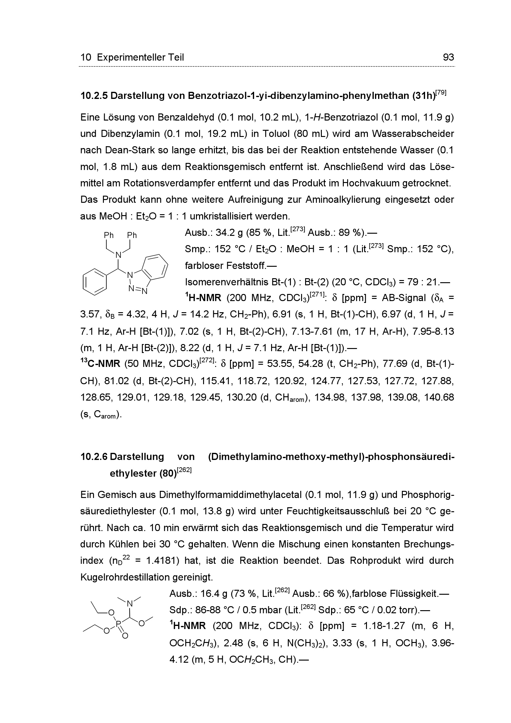 10.2.5 Darstellung von Benzotriazol-1-yl-dibenzylamino-phenylmethan