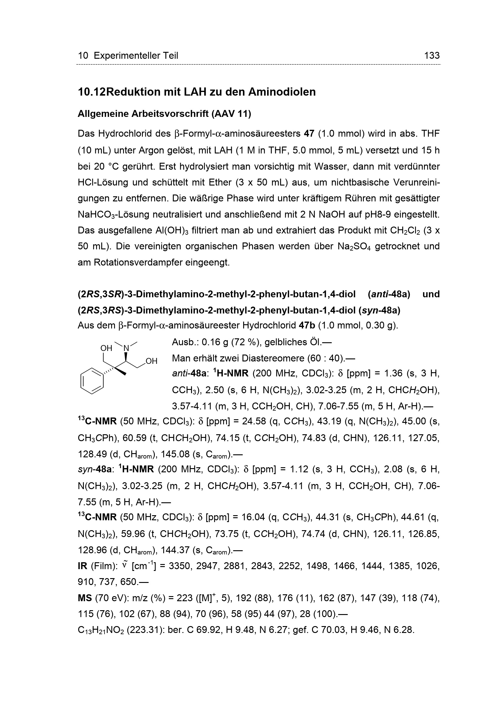 10.12 Reduktion mit LAH zu den Aminodiolen