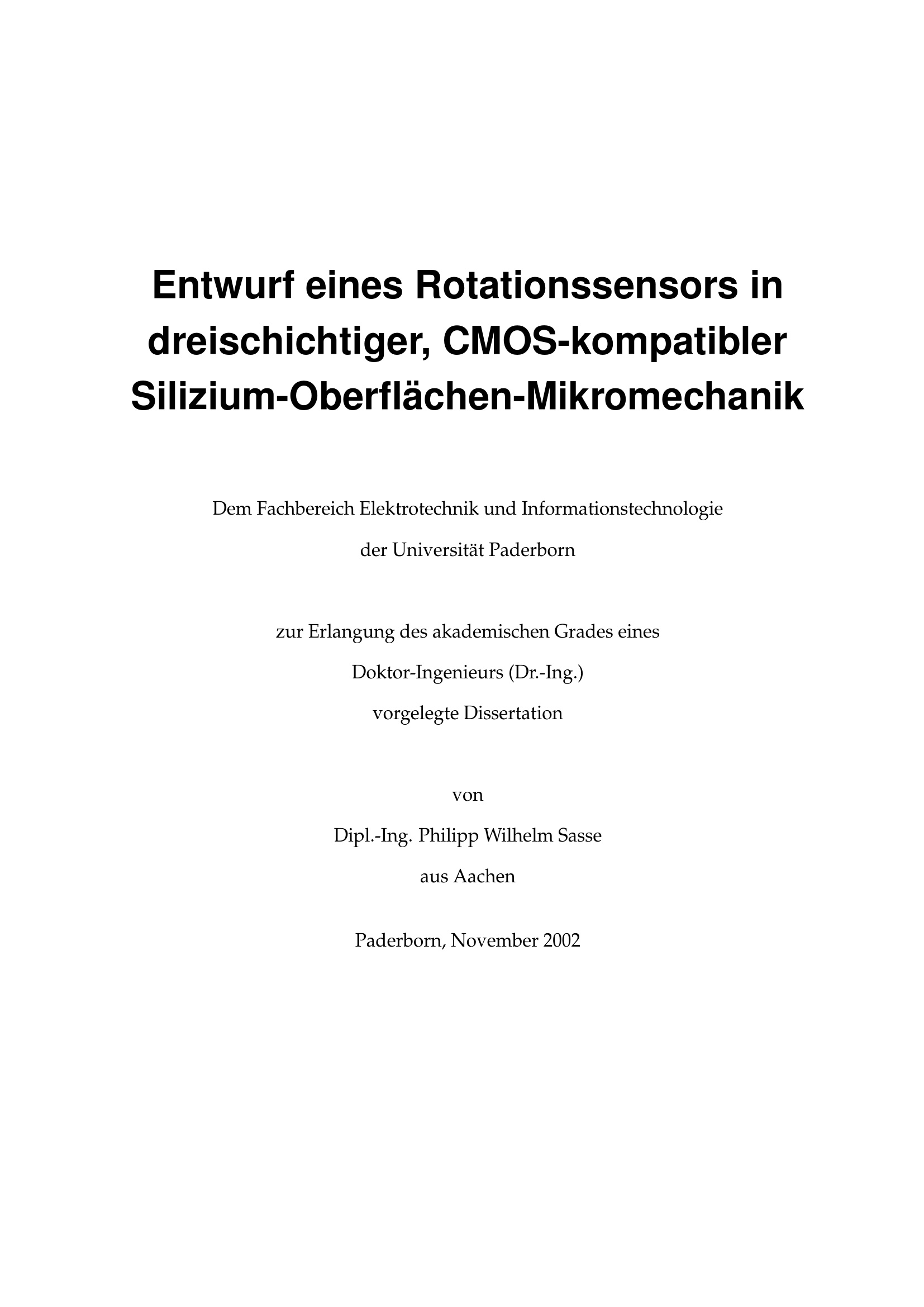 Entwurf eines Rotationssensors in dreischichtiger, CMOS-kompatibler Silizium-Oberflächen-Mikromechanik / von Philipp Wilhelm Sasse