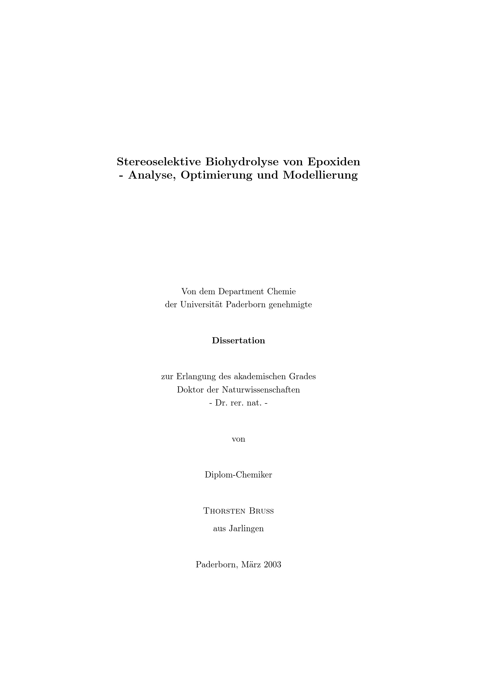 Stereoselektive Biohydrolyse von Epoxiden : Analysen, Optimierung und Modellierung / von Thorsten Bruss