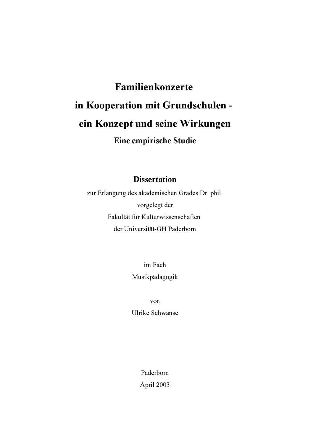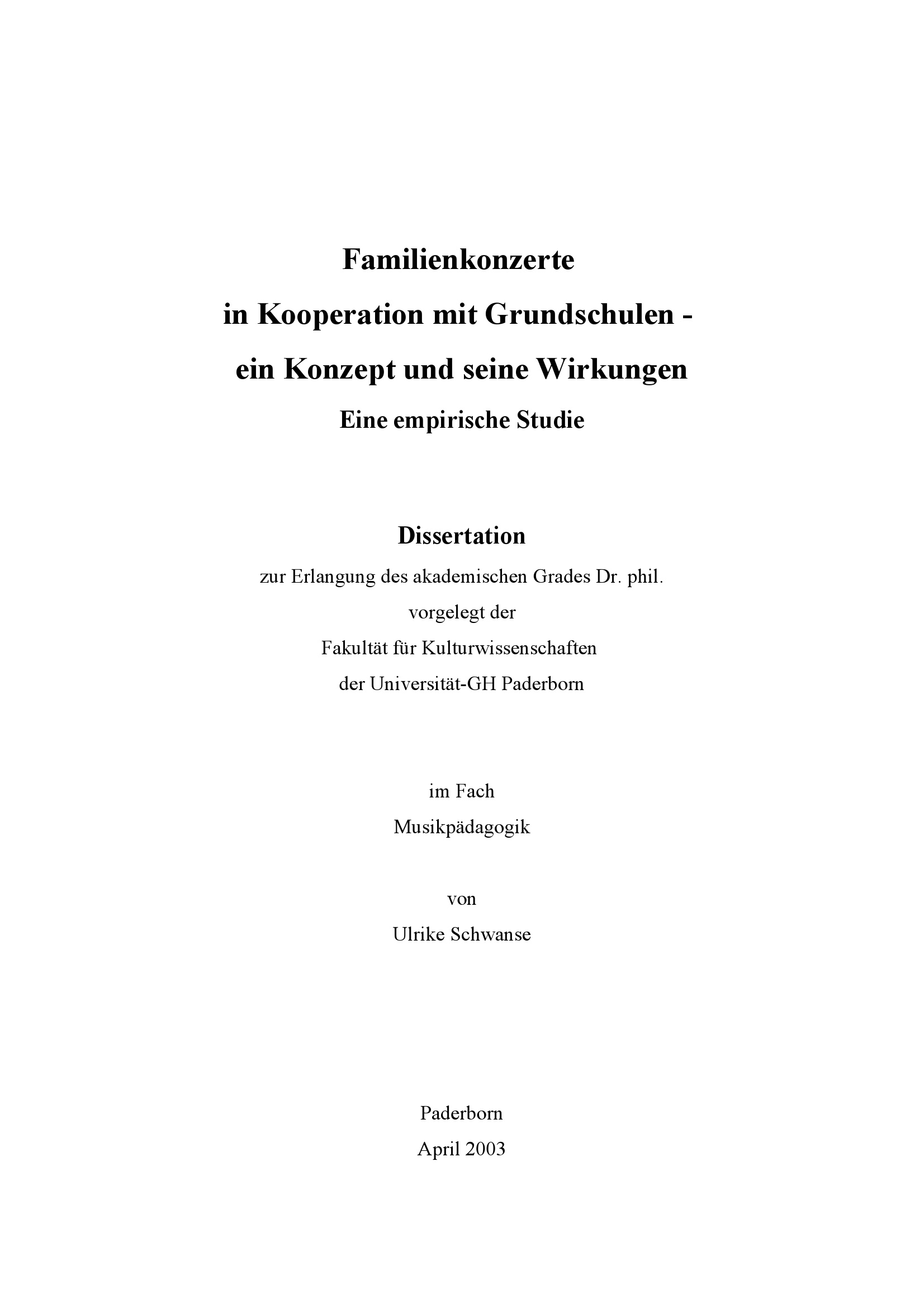 Familienkonzerte in Kooperation mit Grundschulen - ein Konzept und seine Wirkungen : eine empirische Studie / Ulrike Schwanse