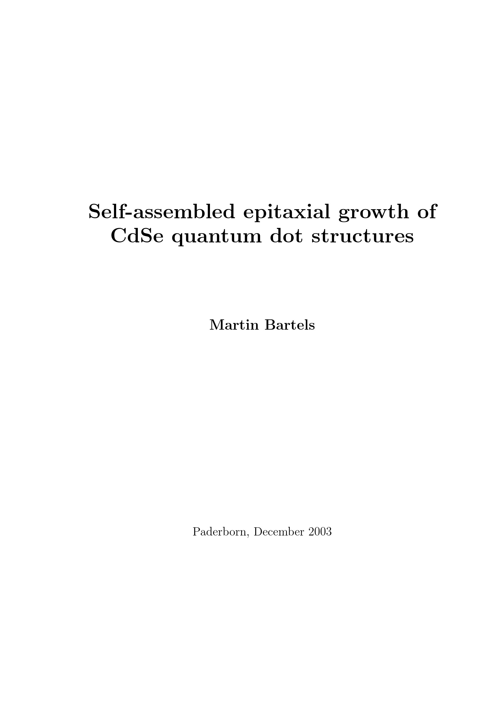Self-assembled epitaxial growth of CdSe quantum dot structures / von Martin Bartels
