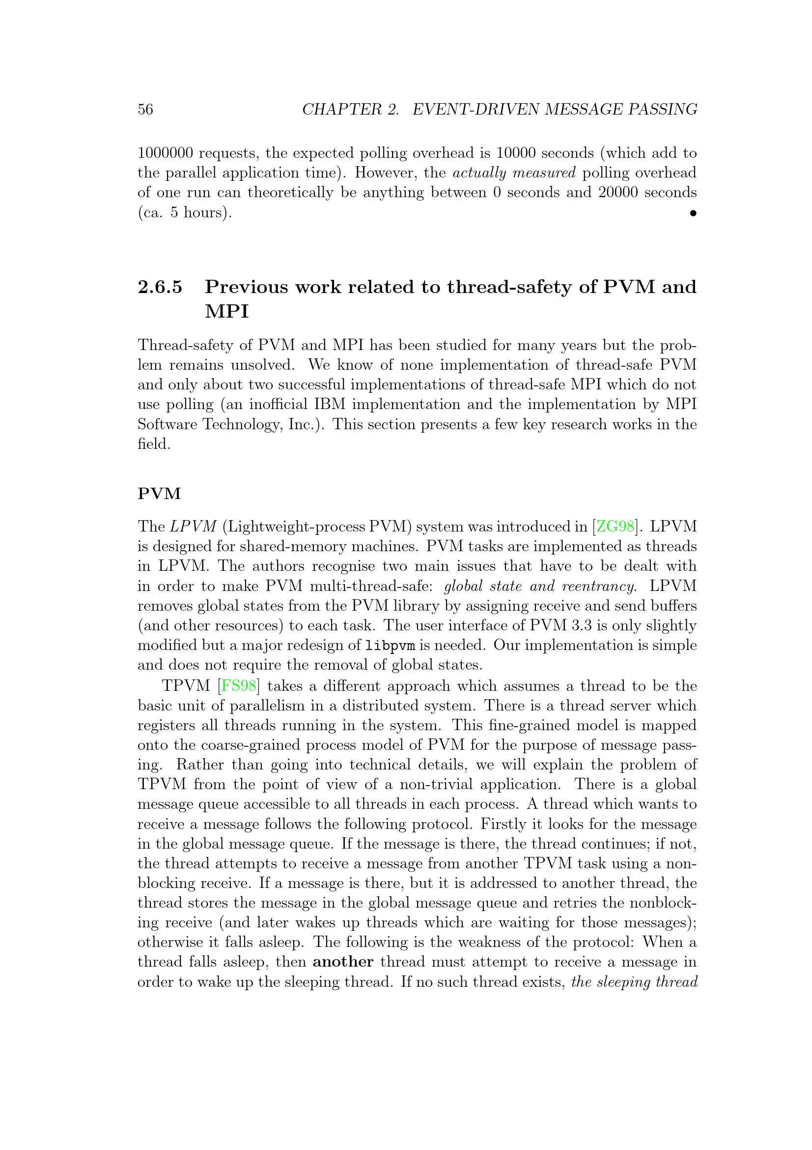 2.6.5 Previous work related to thread-safety of PVM and MPI
