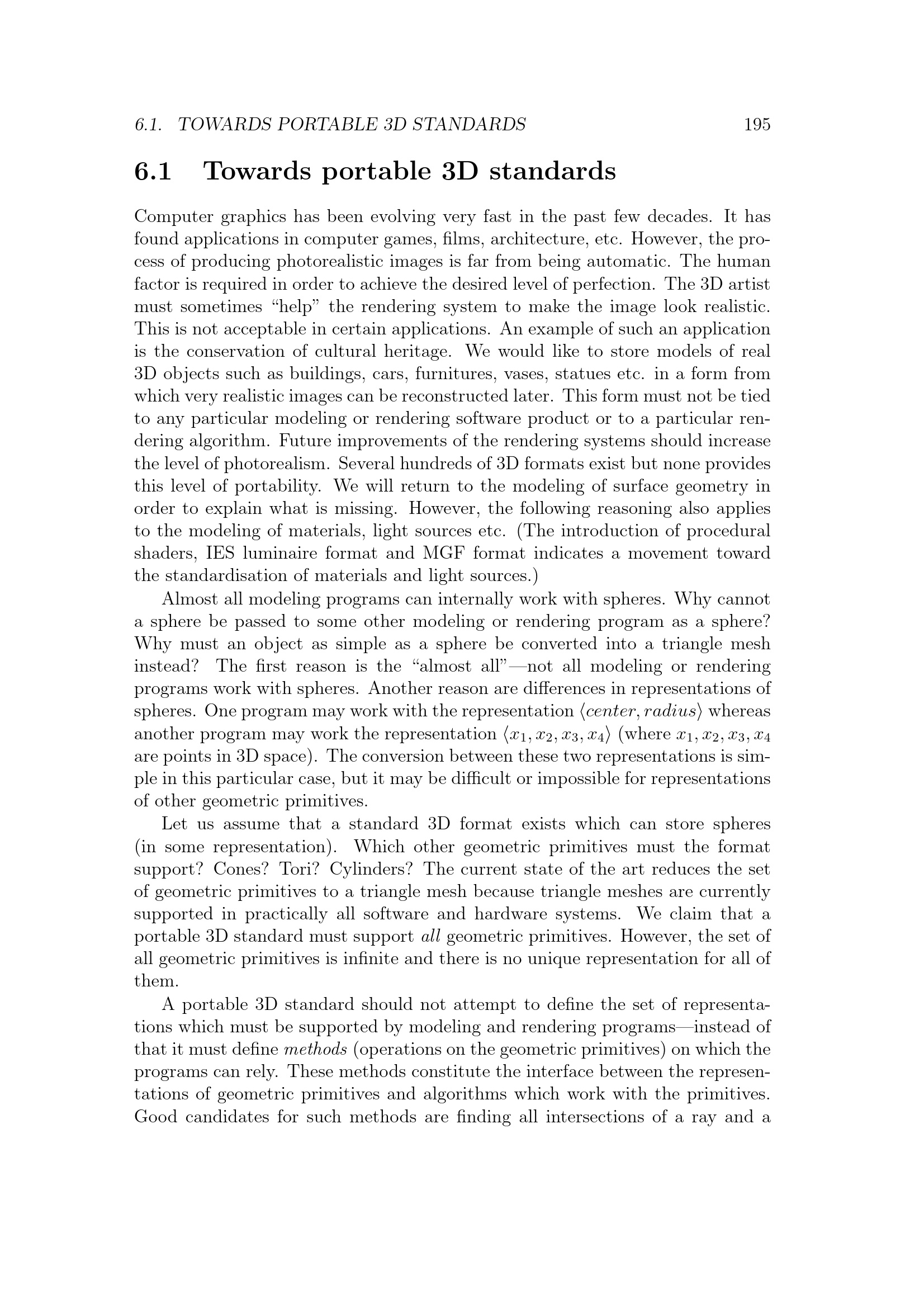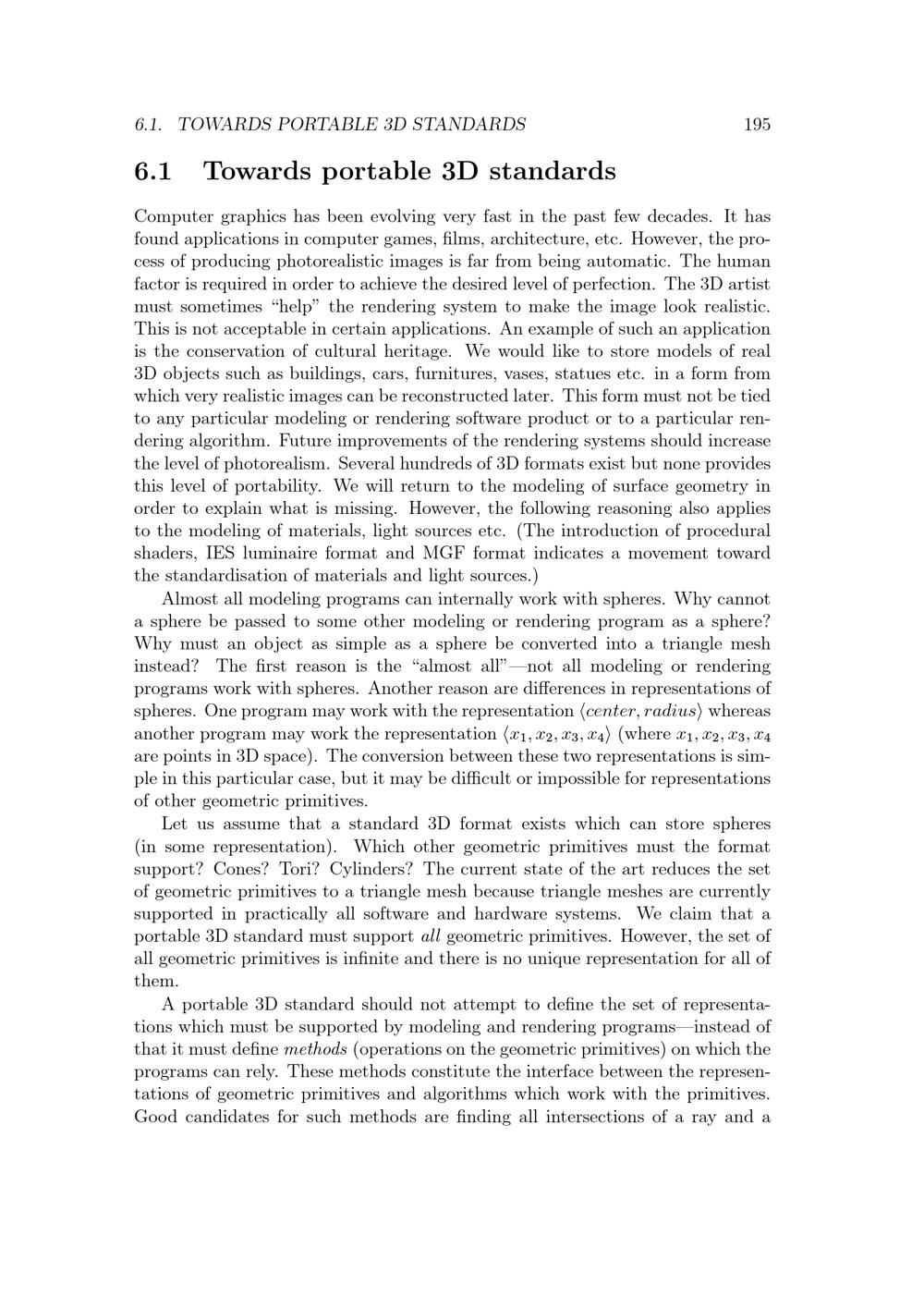 6.1 Towards portable 3D standards