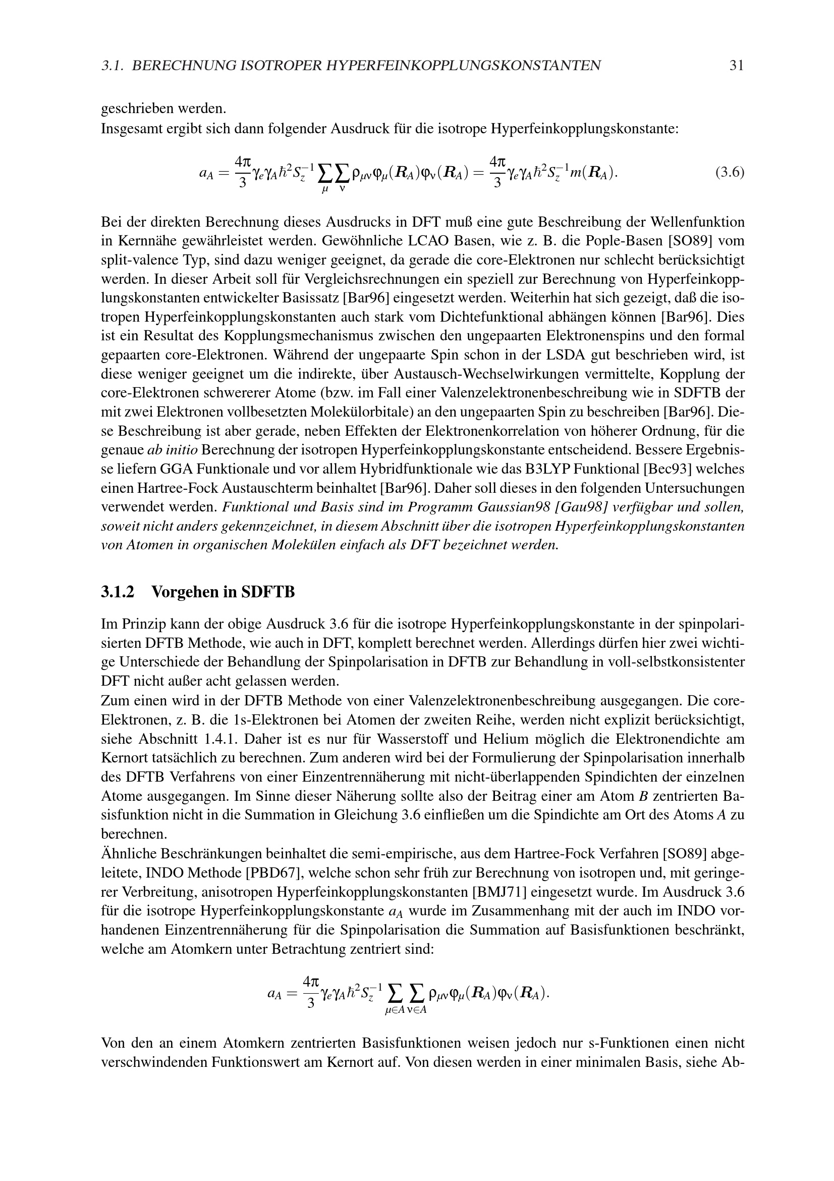 3.1 Berechnung isotroper Hyperfeinkopplungskonstanten