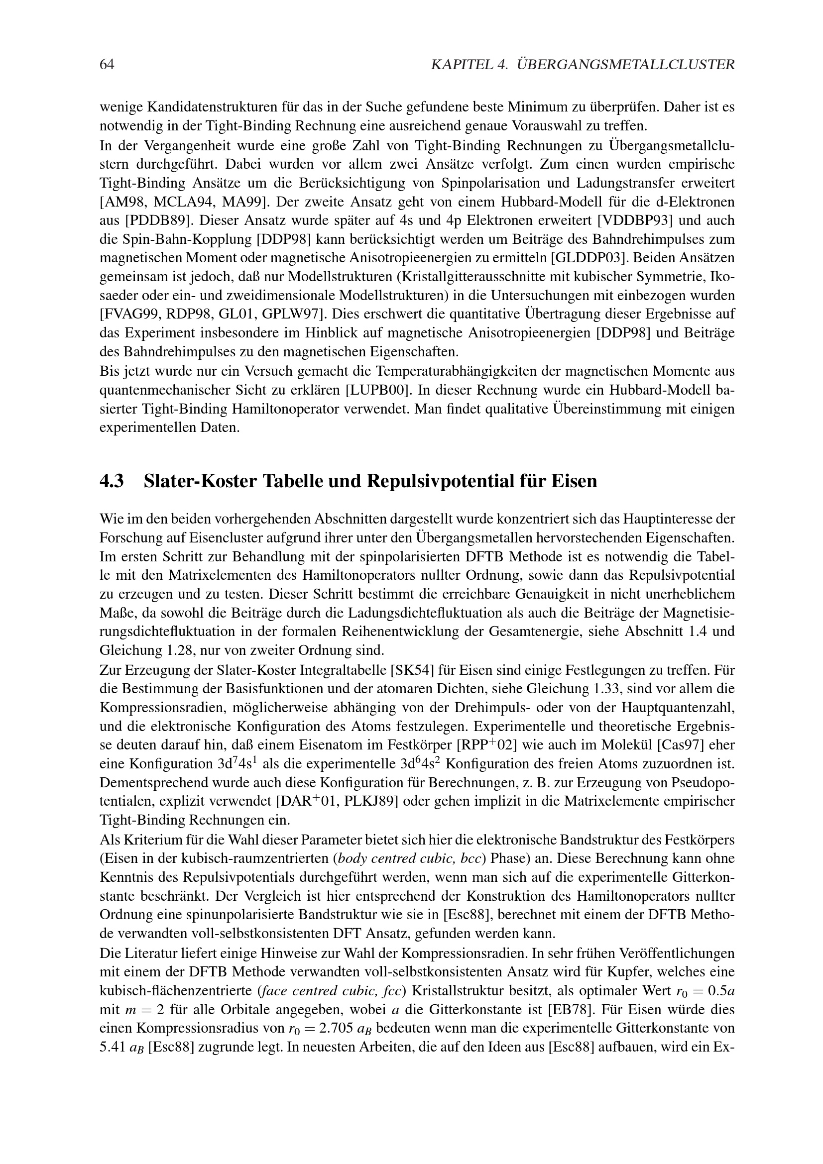 4.3 Slater-Koster Tabelle und Repulsivpotential für Eisen