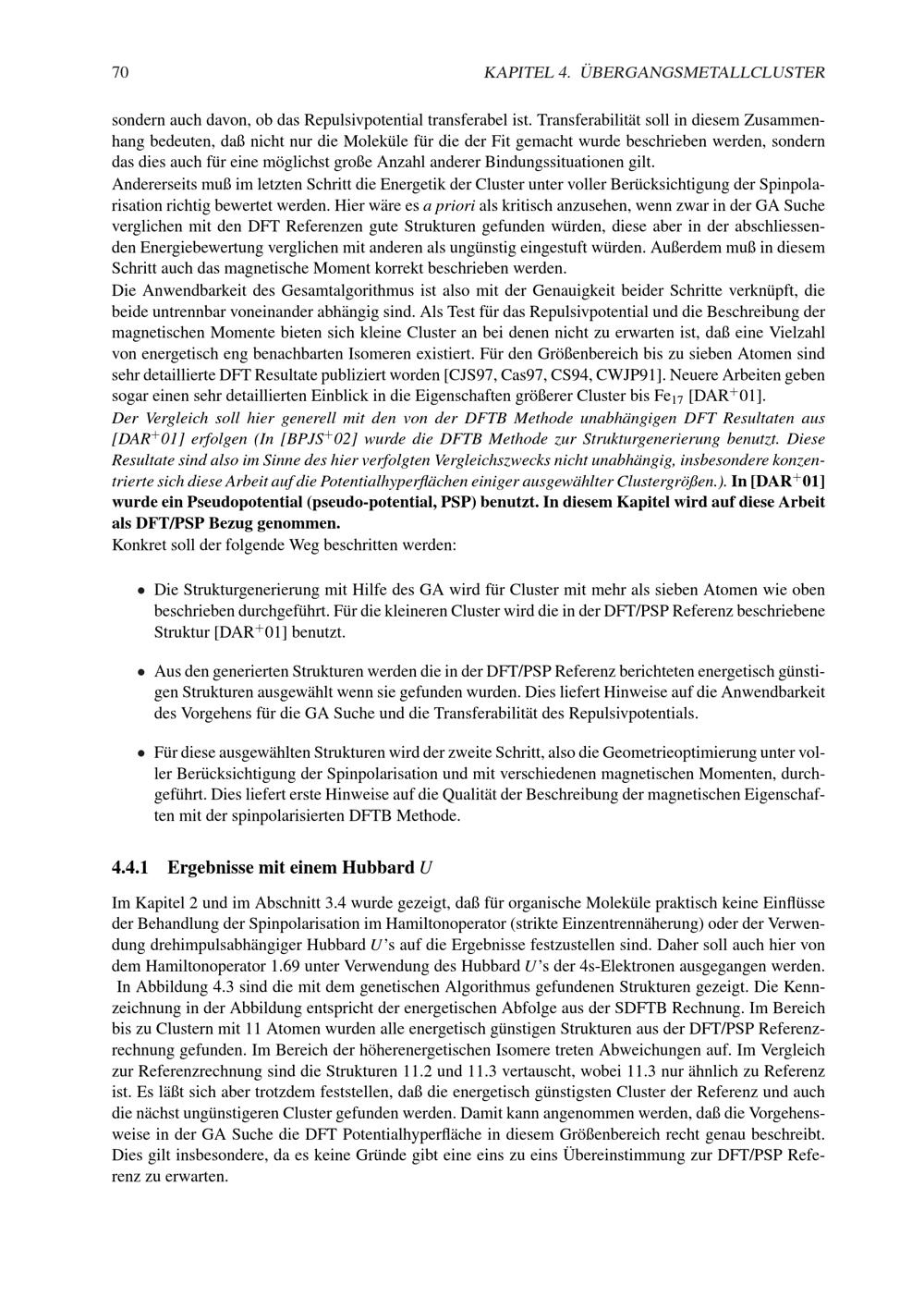 4.4.1 Ergebnisse mit einem Hubbard U