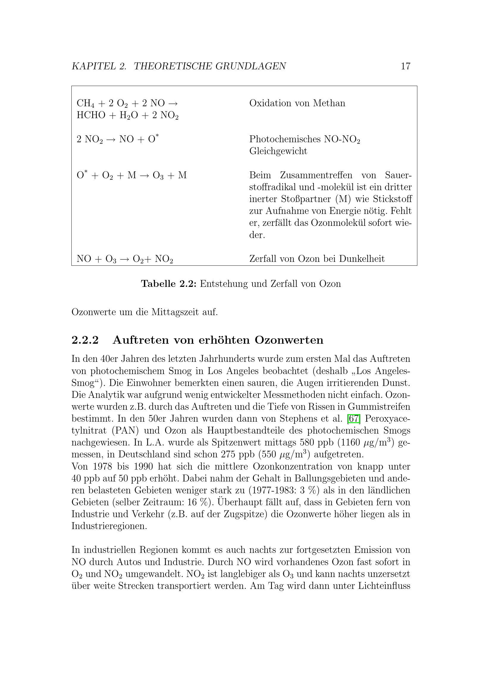Auftreten von erhöhten Ozonwerten