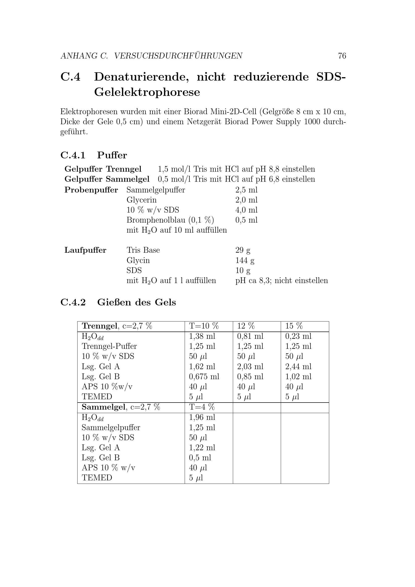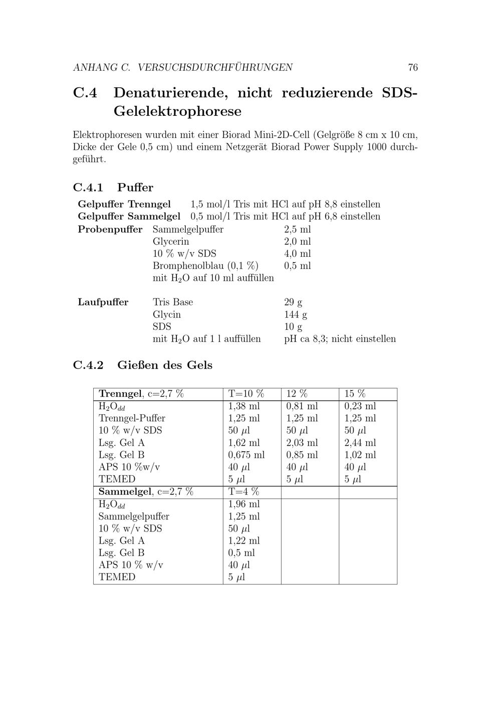 Denaturierende, nicht reduzierende SDS-Gelelektrophorese