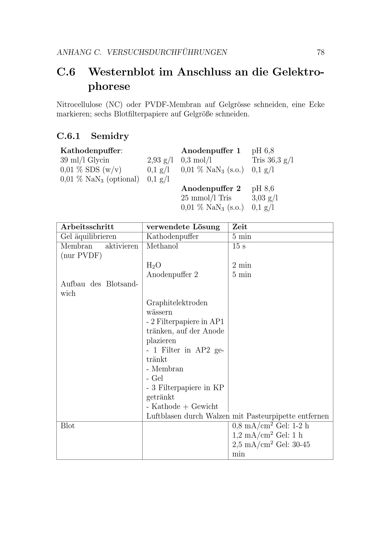 Westernblot im Anschluss an die Gelektrophorese