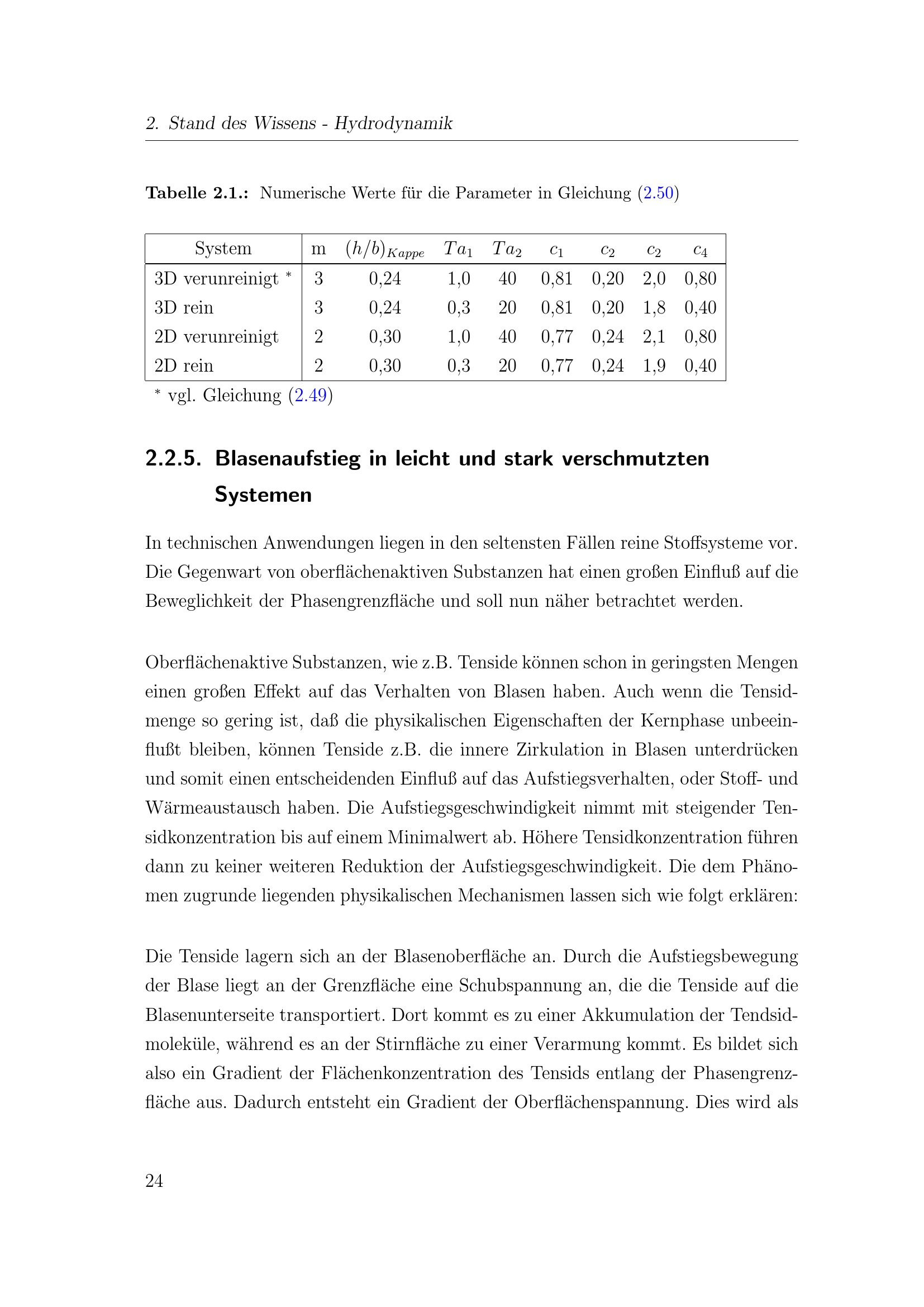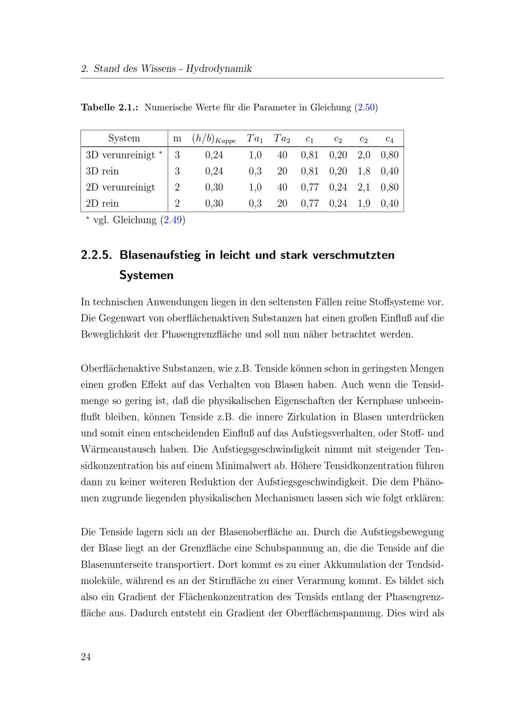 Blasenaufstieg in leicht und stark verschmutzten Systemen