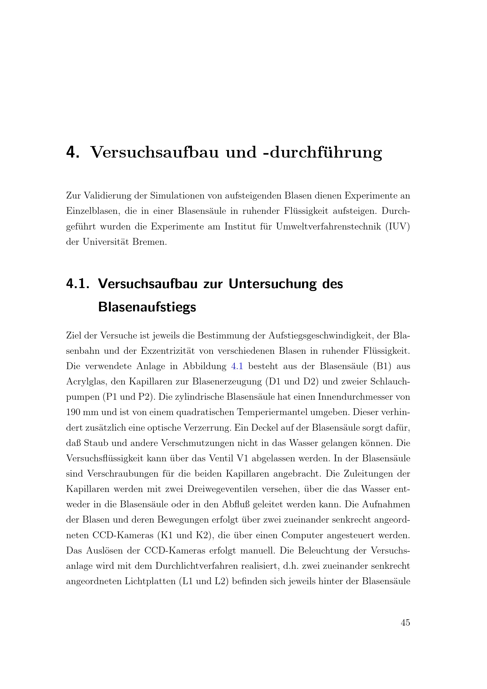 Versuchsaufbau zur Untersuchung des Blasenaufstiegs