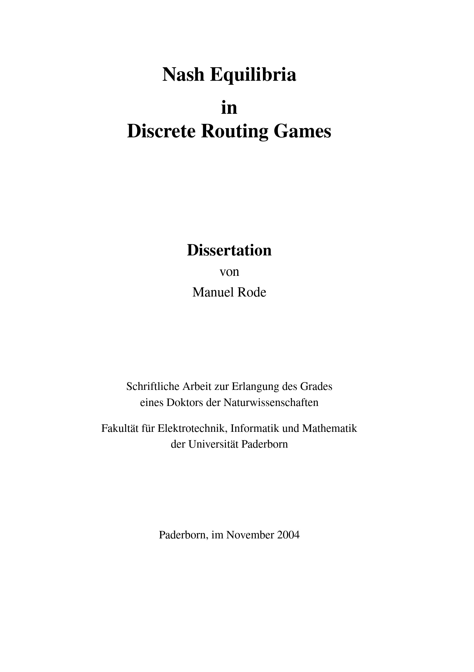 Nash equilibria in discrete routing games / von Manuel Rode