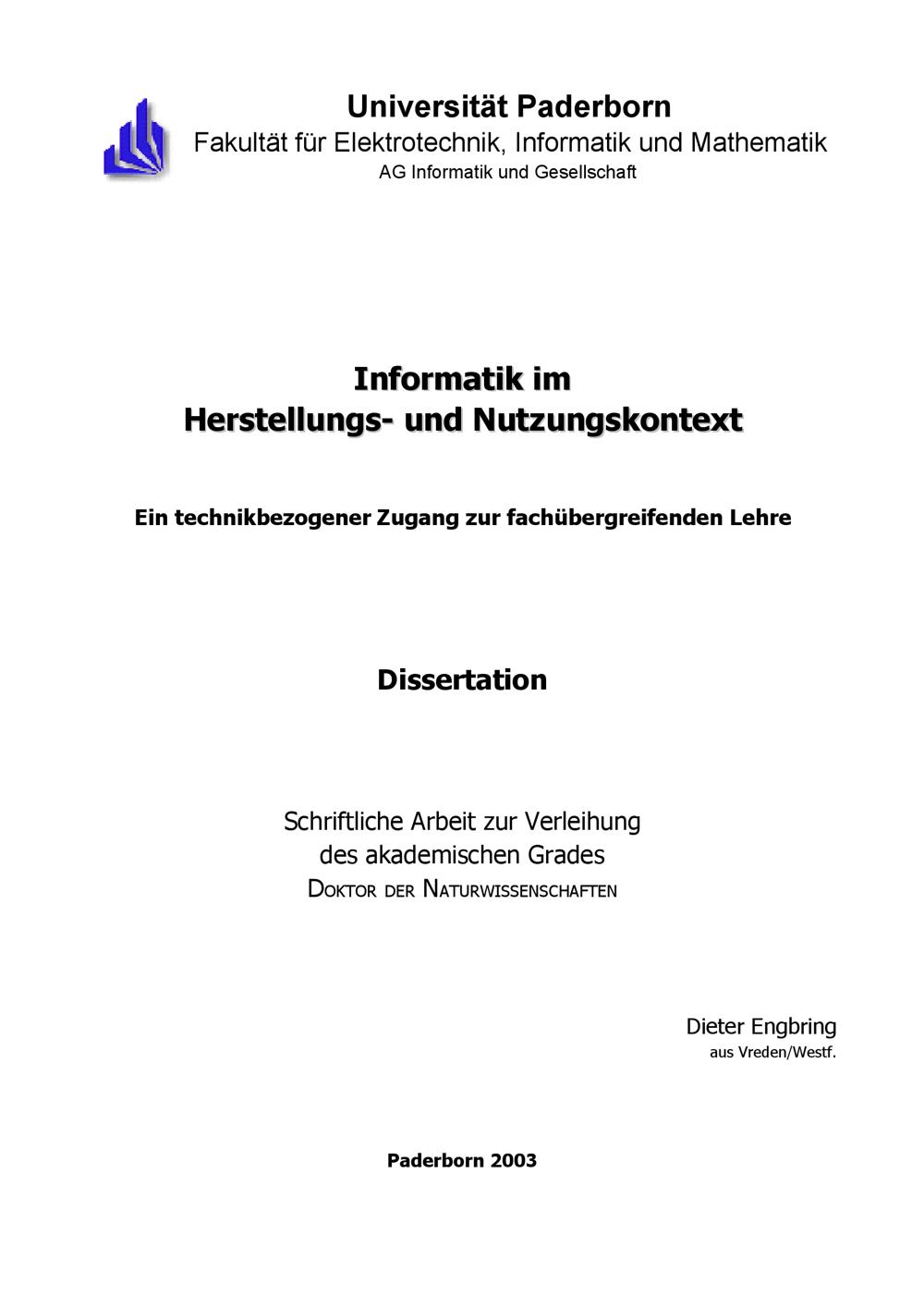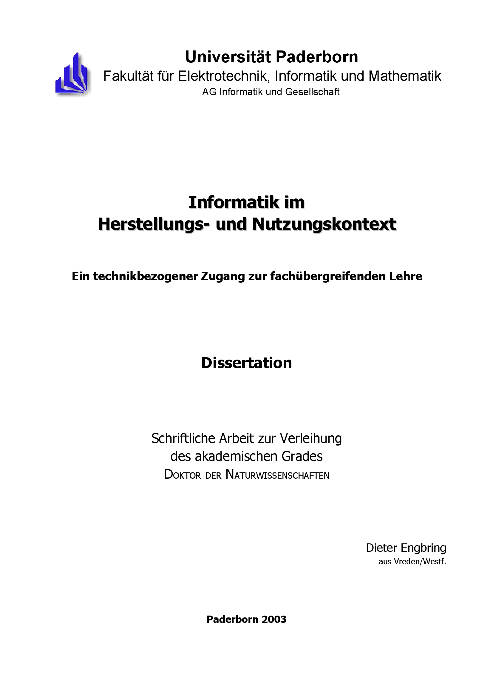 Informatik im Herstellungs- und Nutzungskontext : ein technikbezogener Zugang zur fachübergreifenden Lehre / Dieter Engbring