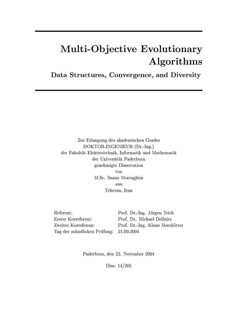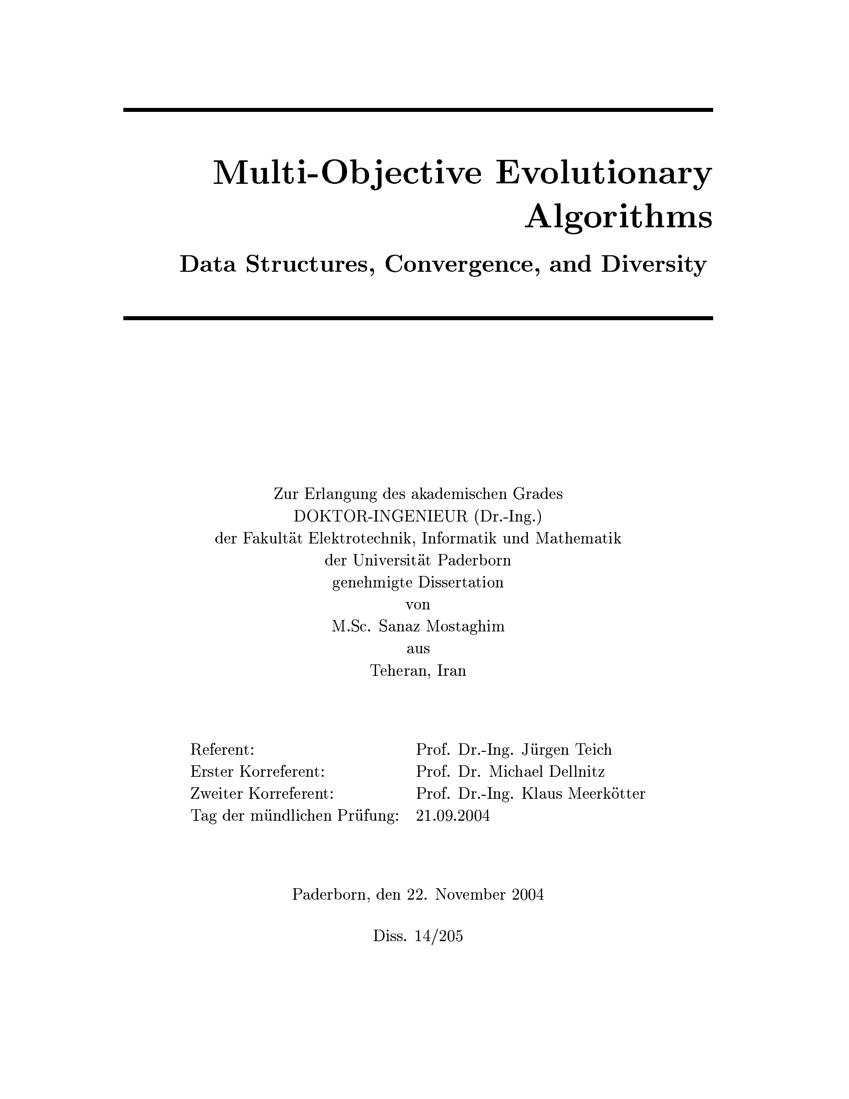 Multi-objective evolutionary algorithms : data structures, convergence, and diversity / Sanaz Mostaghim