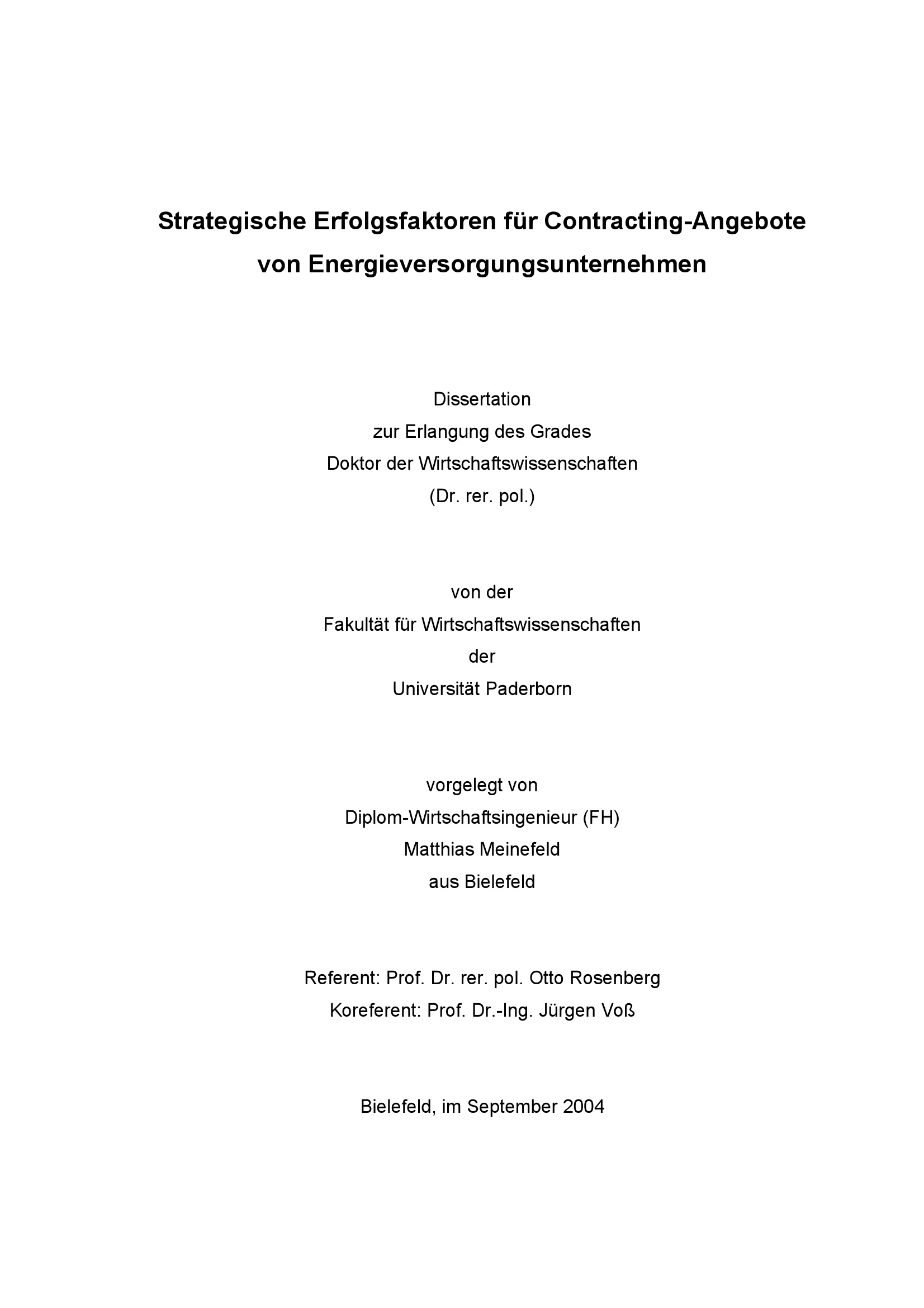 Strategische Erfolgsfaktoren für Contracting-Angebote von Energieversorgungsunternehmen / von Matthias Meinefeld
