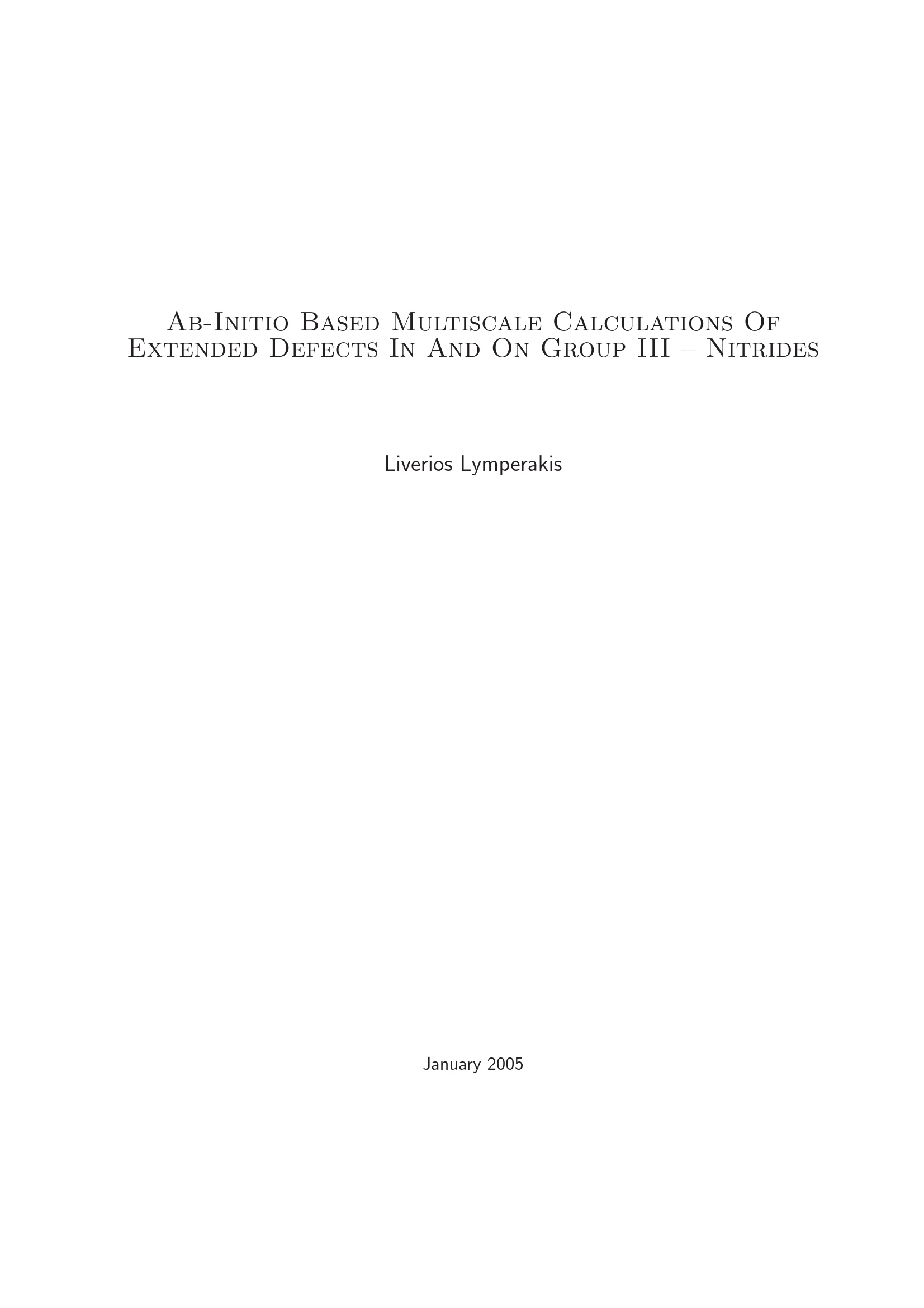Ab-initio based multiscale calculations of extended defects in and on group III-nitrides / Liverios Lymperakis