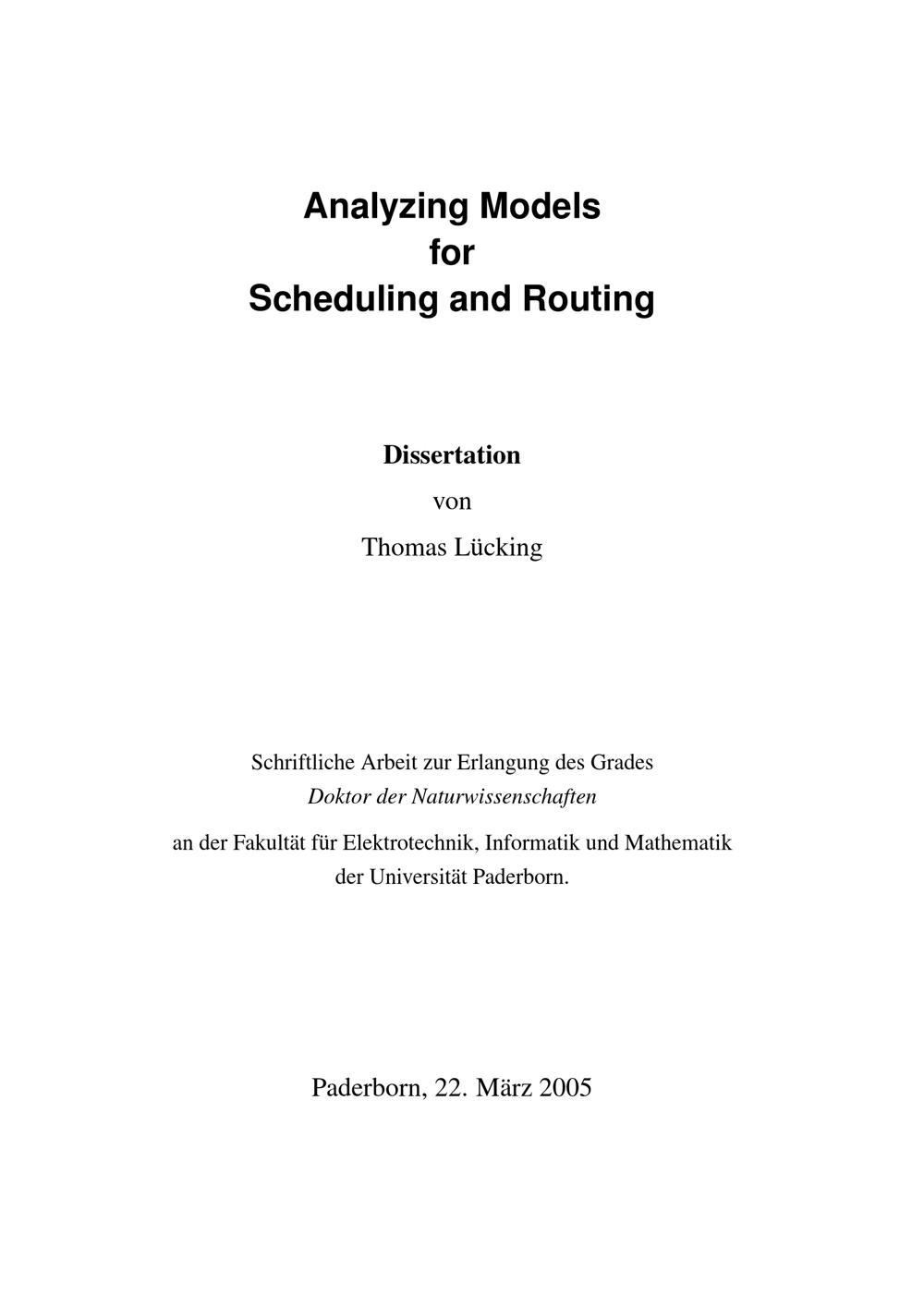 Analyzing models for scheduling and routing / von Thomas Lücking
