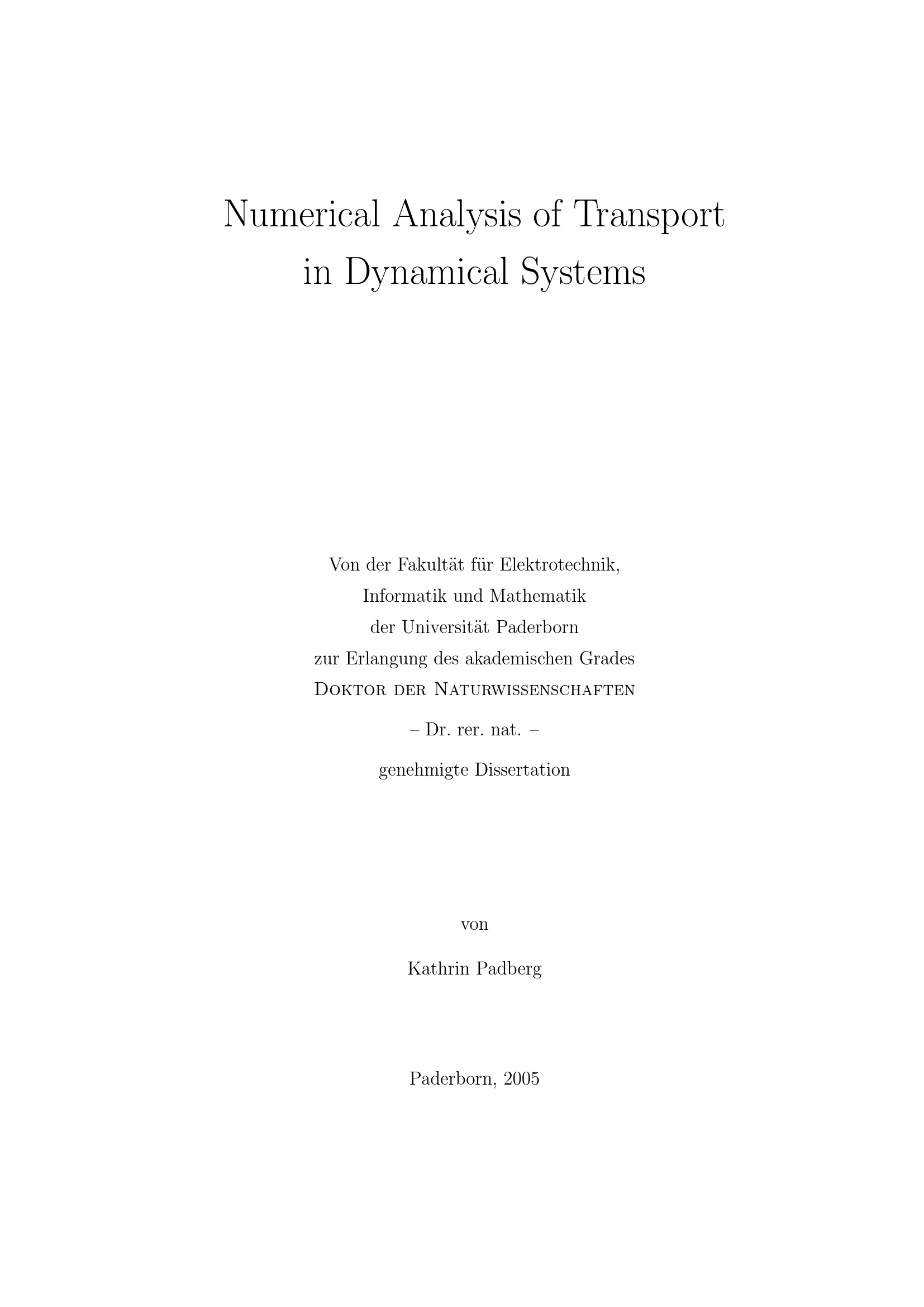 Numerical analysis of transport in dynamical systems / Kathrin Padberg