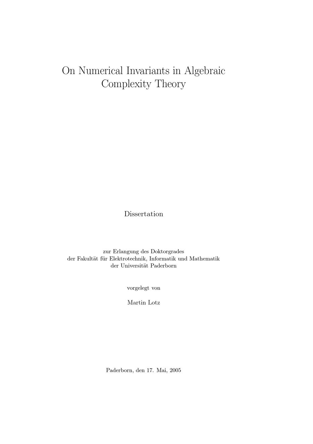On numerical invariants in algebraic complexity theory / von Martin Lotz